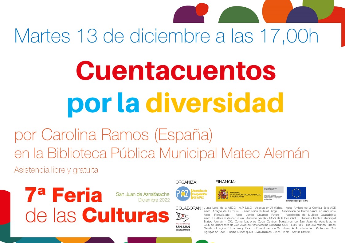 La asistencia es libre hasta completar el aforo. Está actividad forma parte de la 7ª Feria de las Culturas que organiza Asamblea de Cooperación por la Paz (ACPP) y en la que colaboran el Ayuntamiento de San Juan de Aznalfarache y numerosos colectivos de la localidad.