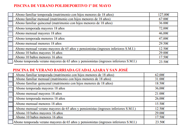 Este jueves 13 de junio se ha abierto el plazo para personadas empadronadas y a partir del 27 de Junio, se abrirá para no empadronados. Los precios de los bonos están detallados en el propio impreso de solicitud de los mismos.
