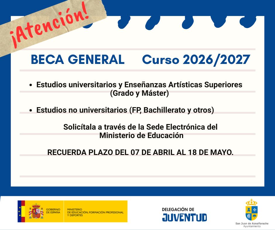 El 7 de abril se abre el plazo para solicitar las Becas para el próximo curso.
