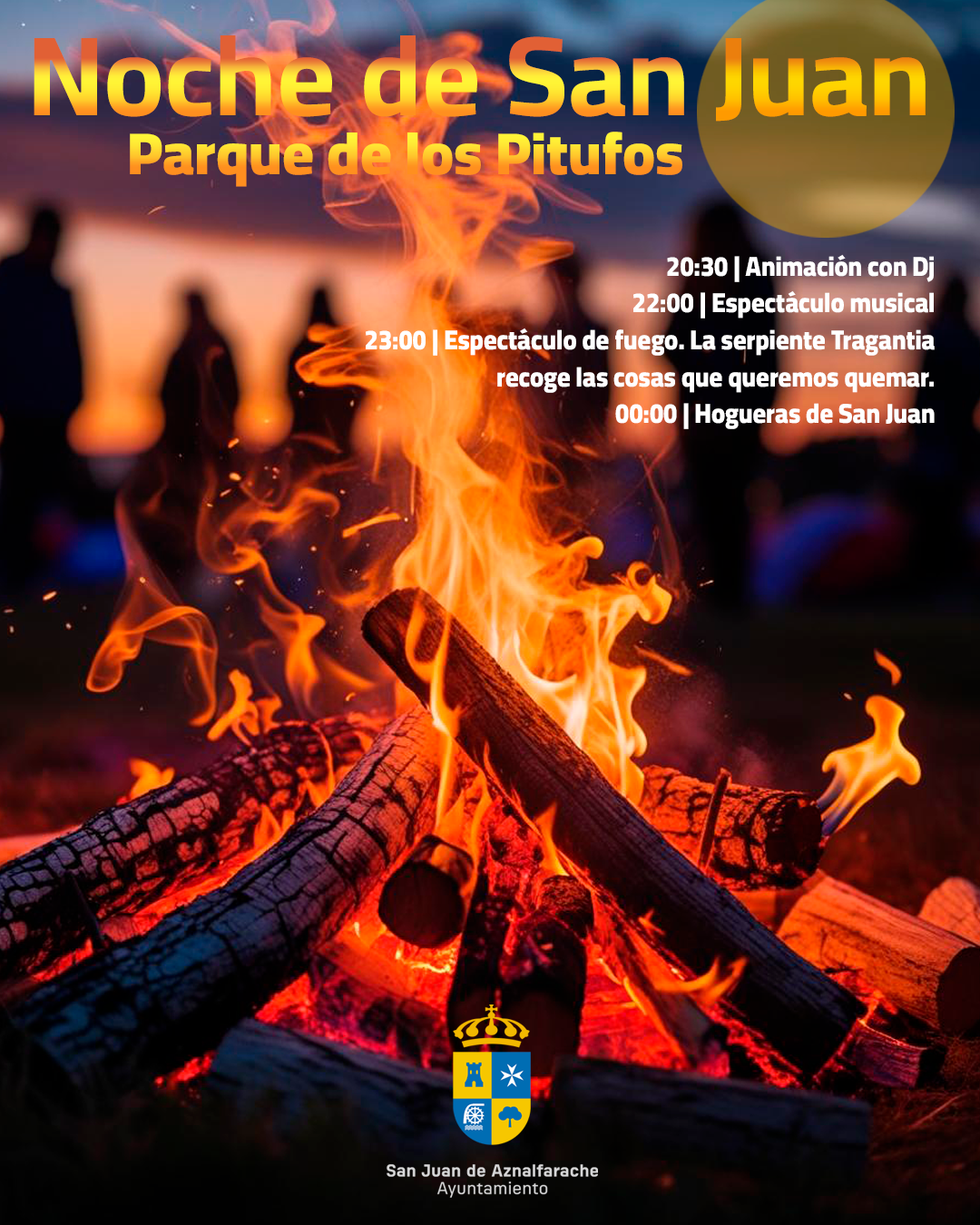 Pero la celebración de la Noche de San Juan comenzará antes, a partir de las 20:30 con la presencia de un Dj de animación en el parque de los Pitufos que a partir de las 22:00 horas dará paso a un espectáculo musical. La entrada es libre.