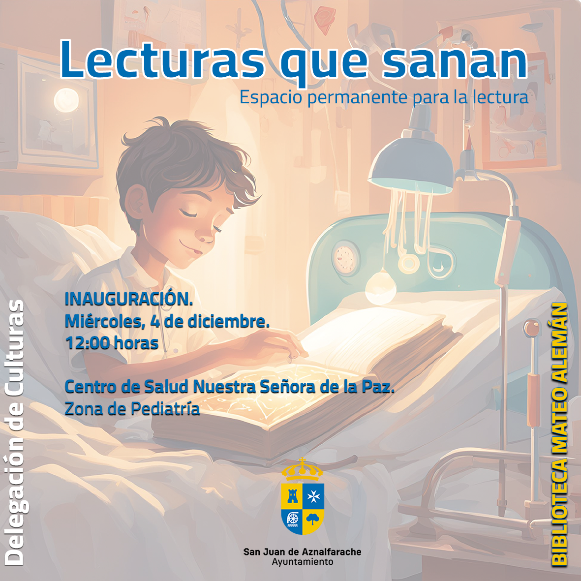 El miércoles 4 de diciembre se inaugura en el Centro de Salud Nuestra Señora de la Paz un espacio dedicado a la lectura. Una propuesta de la Bilioteca Municipal Mateo Alemán que va a cerder libros infantiles y algunos de adultos para que estén a disposición de los usuarios del centro de Salud durante las esperas. Se va a instalar una estantería con varios ejemplares, que se renovarán cada cierto tiempo, en la zona de pediatría.
