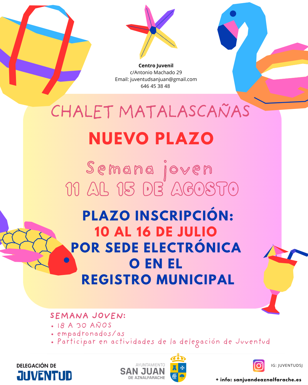 El NUEVO plazo de inscripción estará abierto desde el 10 al 16 de julio. Puedes descargar la solicitud y una vez rellena llevarla al registro del Ayuntamiento o bien enviarla a través de sede electrónica utilizando el procedimiento creado para esta convocatoria.