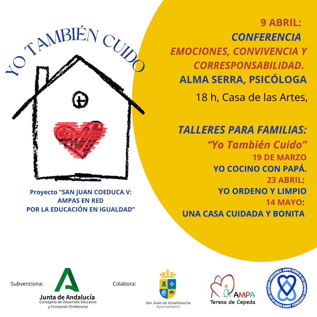 Las Ampas Cerro de los Sagrados Corazones (Ceip San Pedro Crisólogo) y Teresa de Cepeda (Colegio Santa Teresa de Jesús) con la colaboración de las áreas de Igualdad y Educación del Ayuntamiento de San Juan de Aznalfarache y a través de una subvención de la Consejería de Desarrollo Educativo y Formación Profesional de la Junta de Andalucía, ponen en marcha la quinta edición del Programa San Juan Coeduca, que en esta ocasión traslada un mensaje claro y definido: "Yo también cuido".