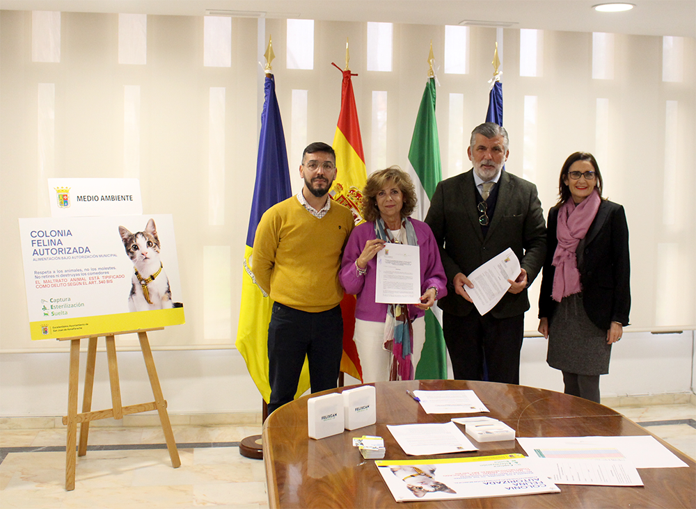 La delegación de Medio Ambiente del Ayuntamiento de San Juan de Aznalfarache continúa avanzado en la gestión de la población de animales domésticos de la localidad. A las gestiones realizadas para la ordenación de las colonias felinas se une ahora la firma de un convenio con el Colegio Oficial de Veterinarios de Sevilla, que va a permitir una gestión y control del censo de animales por un organismo especializado en la materia.