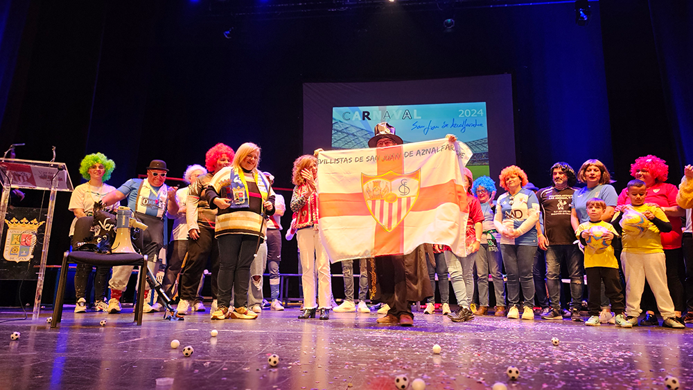 El pregonero tuvo palabras de cariño para todas las personas que han colaborado con él en este recorrido y se despidió con una segunda declaración de amor, la primera fue para María José, esta vez a San Juan de Aznalfarache. «Nací sevillista. No nací en San Juan, ni en febrero. Pero, seguro, seguro, seguro, que moriré sevillista, sanjuanero y carnavalero. Y desde hoy, pregonero».