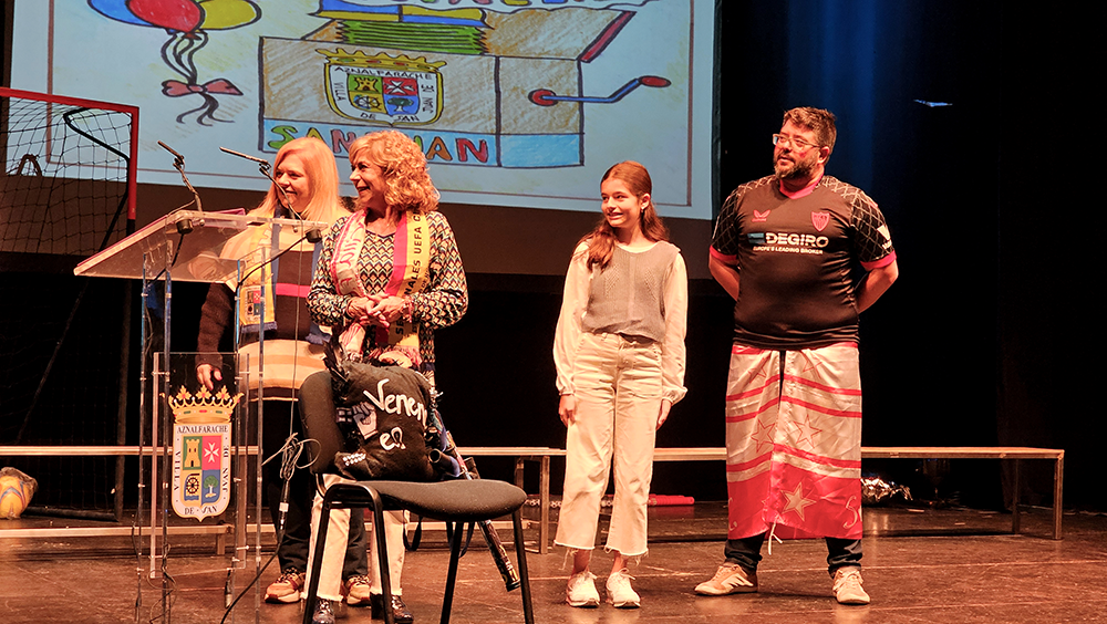 Rafael Jiménez Foncubierta había presentado a Manolo Carlos haciendo un recorrido por su trayectoria en San Juan de Aznalfarache, ligada a la comunicación y al deporte, y otra periodista, Sara Zurita, había iniciado la presentación del acto, en el que Cristina Suárez Pontones, alumna del colegio Santa Teresa, recibió el premio como ganadora del concurso escolar, por segunda ocasión, para la elección del cartel anunciador del Carnaval de San Juan. La delegada de Festejos, Rocío Amado, el presidente de la Asociación del Carnaval, Javier Pérez, y la alcaldesa, María Luisa Moya, hicieron entrega del galardón a la joven artista.
