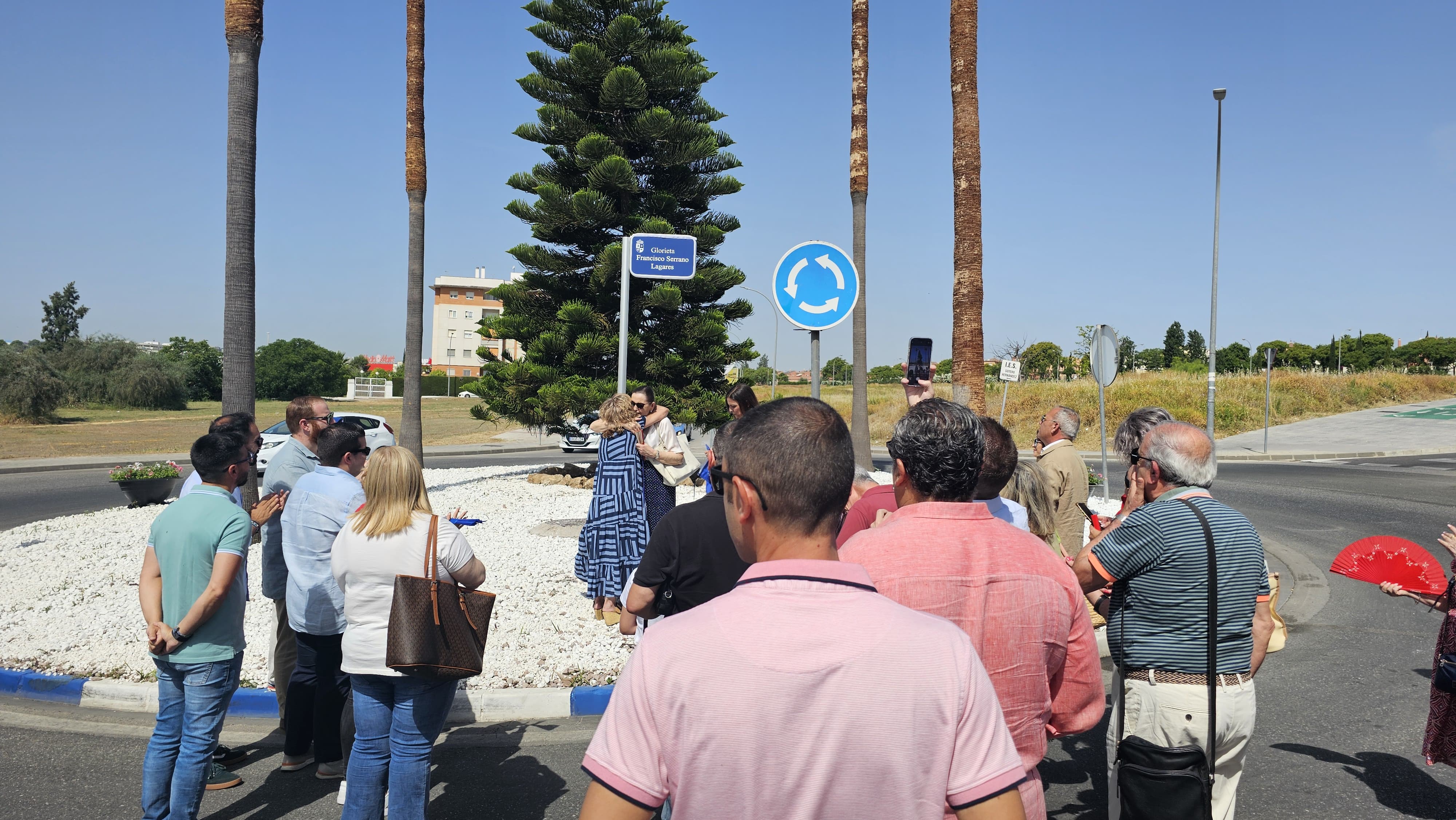 La glorieta Francisco Serrano Lagares se encuentra a la salida del Puente de los Derechos Humanos en dirección Tomares.