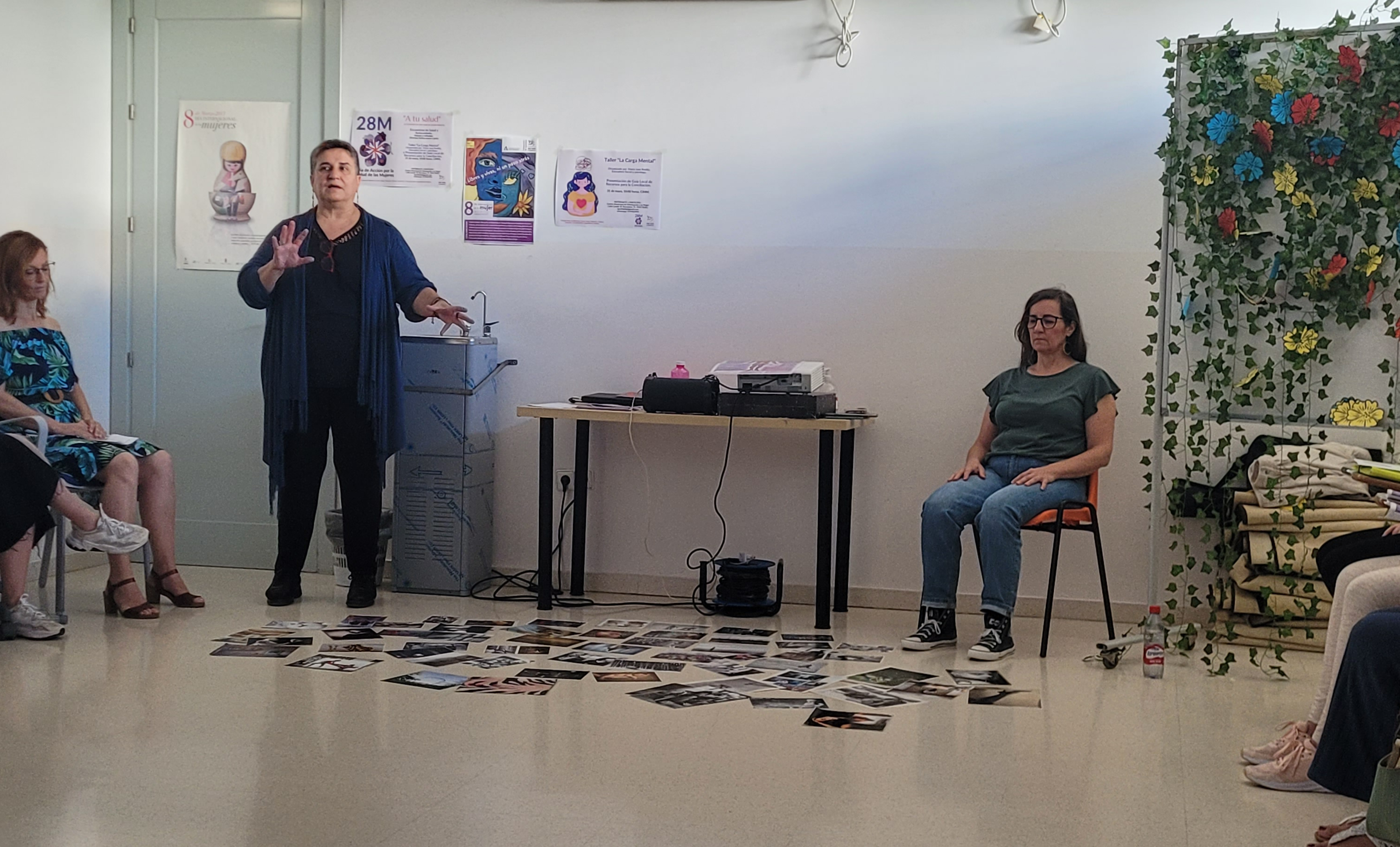 Tras la presentación de la guía ha comenzado un taller sobre "Carga mental" y cómo las personas en especial las mujeres sufren un sobre-esfuerzo ante la acumulación de tareas y responsabilidades familiares y laborales. La educadora social y psicóloga, Mª José Rosillo, ha sido la encargada de impartir este taller con dinámicas y reflexiones que han facilitado técnicas de autocuidado a las participantes.