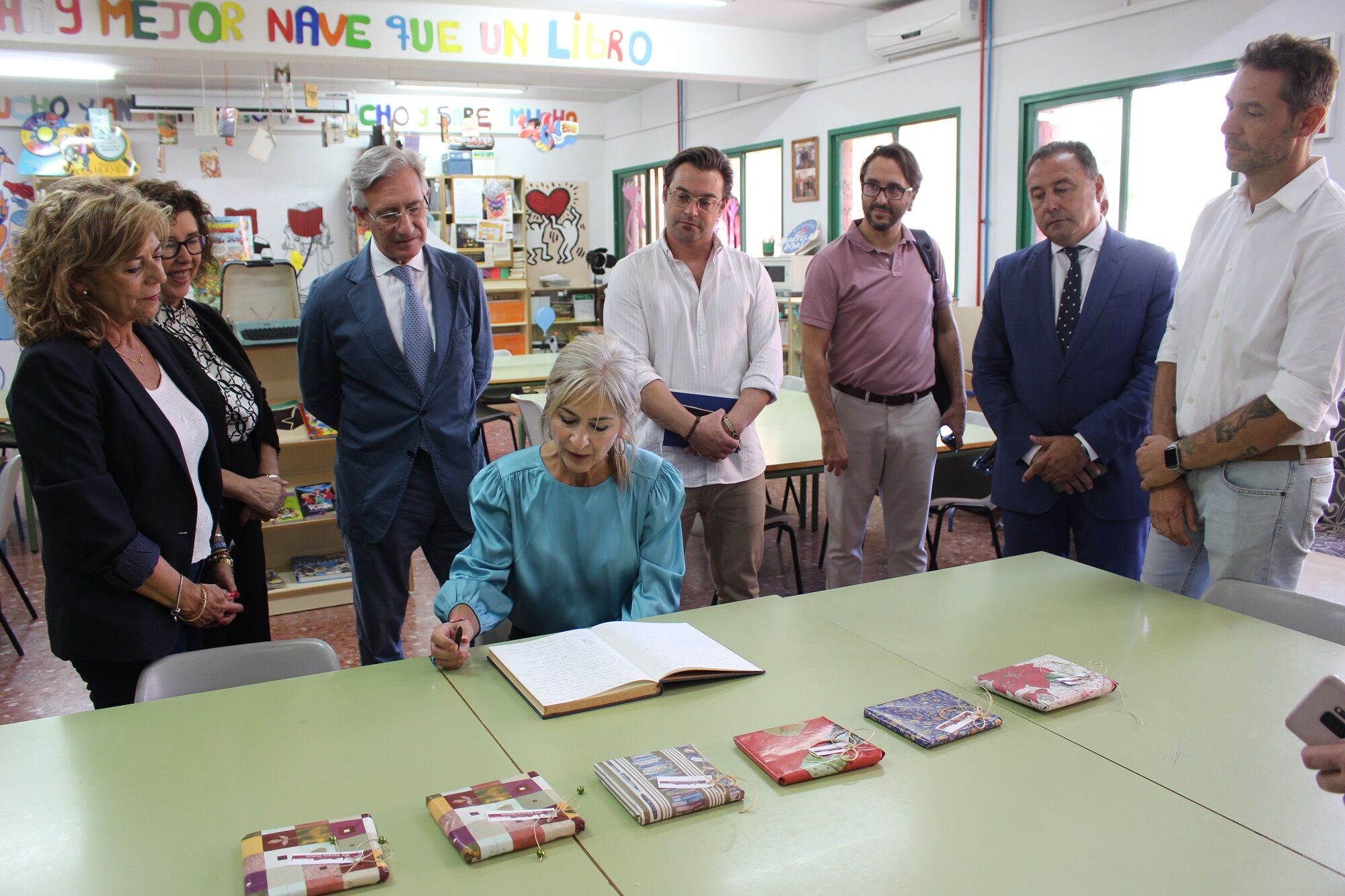 Este centro educativo de la localidad recibió la visita de la consejera coincidiendo con la conmemoración de esta efeméride. El delegado del Gobierno de la Junta de Andalucía, Ricardo Sánchez, el delegado territorial de Educación, Miguel Ángel Aráuz, la alcaldesa de San Juan, Mª Luisa Moya y el primer teniente de alcaldesa y delegado de Educación, Carlos Amado, acompañaron a Patricia del Pozo en esta visita donde conocieron algunos de los nuevos proyectos educativos y de las inversiones realizadas en el IES en este curso 2023/2024.