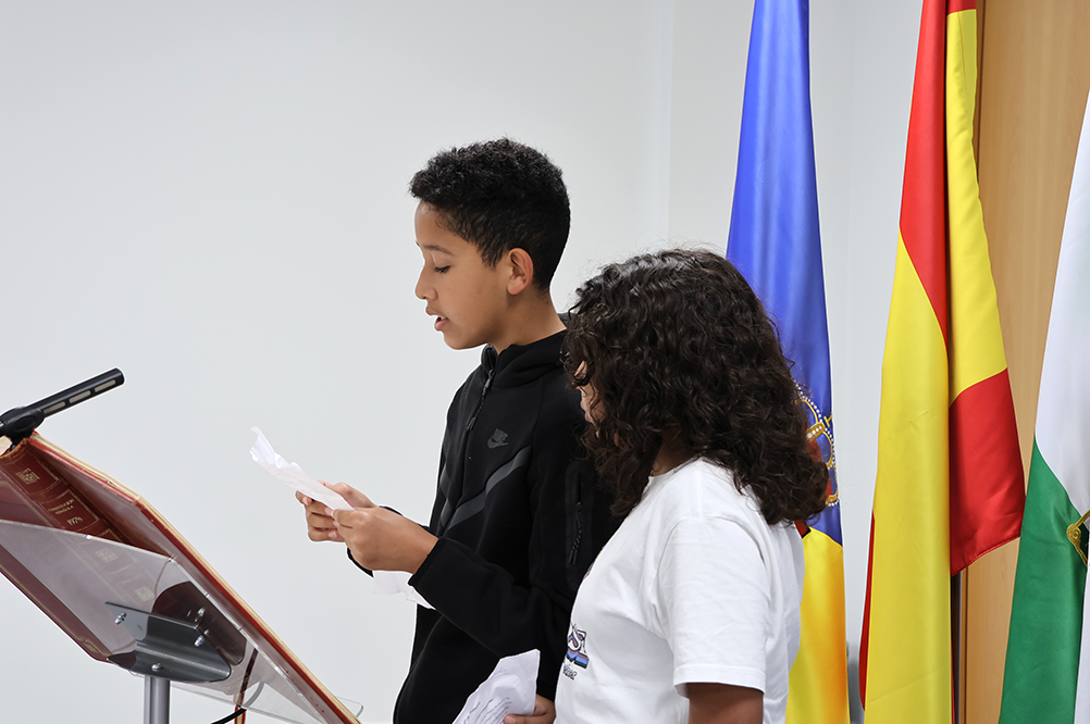 Cada uno de los cinco centros educativos de San Juan de Aznalfarache presentó públicamente los compromisos de igualdad que han acordado en sus respectivos centros. Lenguaje, recreos inclusivos o corresponsabilidad fueron algunos de los temas que incluyeron en sus compromisos por la igualdad. Posteriormente, realizaron preguntas tanto a la alcaldesa como al delegado del Participación Ciudadana, que ambos respondieron en un pleno que se emitió en directo.