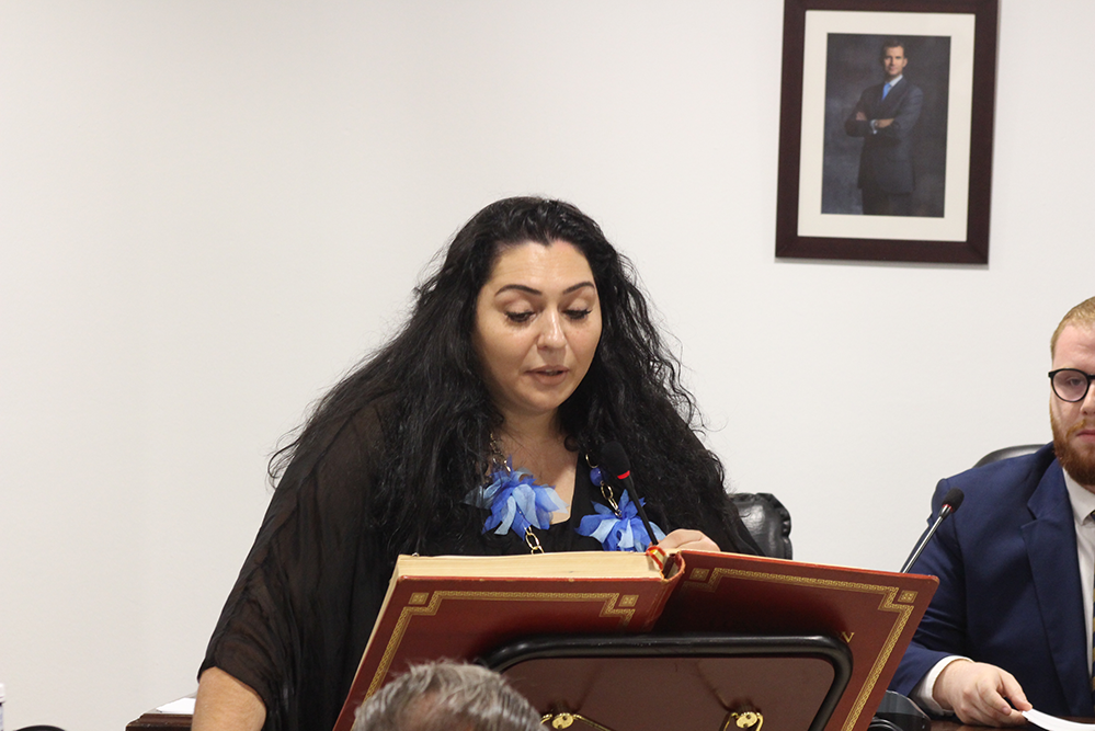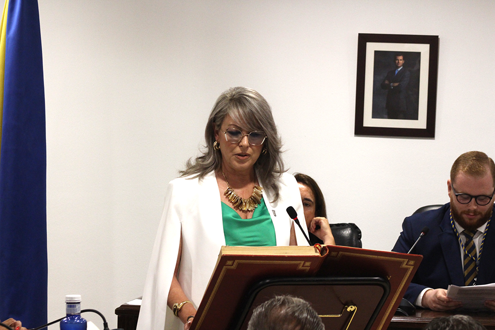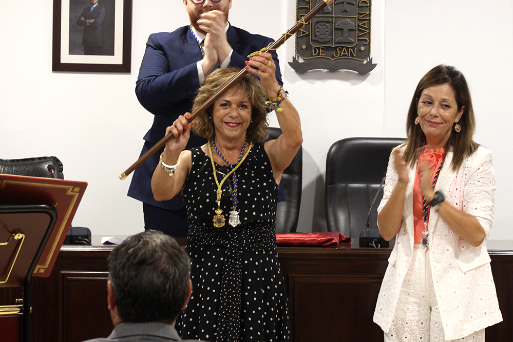 «Voy a ser la primera mujer alcaldesa de San Juan y me vais a permitir que lo reivindique. Soy de esas mujeres luchadoras que nos levantamos cada mañana con el objetivo de mejorar nuestro entorno, nuestro trabajo y nuestras famillias, a las que nadie nos ha regalado nada. Heredera de esas sanjuaneras que trabajaban en la fábrica de loza o en la de corcho, recogiendo aceitunas o en los almacenes, mi madre era una de ellas. Y también de esas mujeres que en sus casas trabajan para que sus hijos tengan un futuro prometedor, porque ese es el verdadero progreso, que quien venga detrás tenga un poco más. Con ese coraje y esa fuerza, afronto el reto que tenemos por delante».