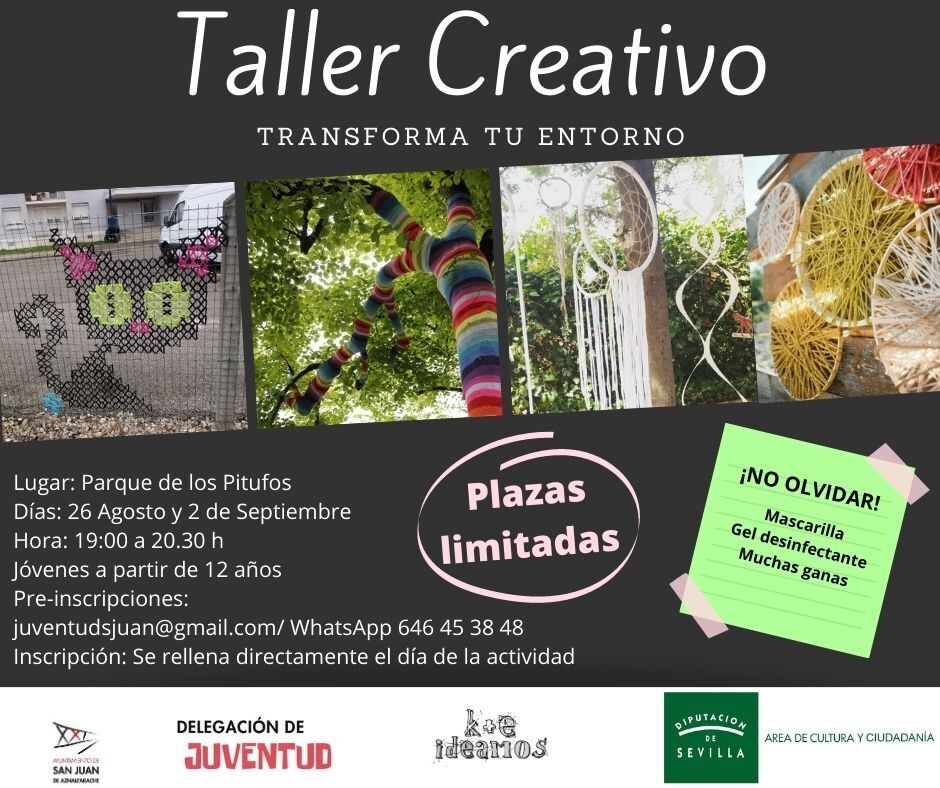La Delegación de Juventud del Ayuntamiento de San Juan de Aznalfarache pone en marcha una nueva iniciativa que tiene como objetivo la transformación de nuestro entorno a través de la creatividad. Lo hará a través del Taller Creativo bajo el título Transforma tu entorno. La iniciativa es gratuita aunque con plaza limitadas y se incluye en el proyecto K+E Ideamos que cofinancia la Diputación de Sevilla.