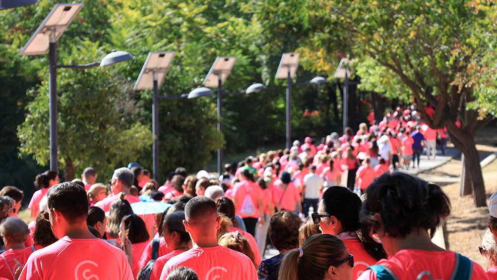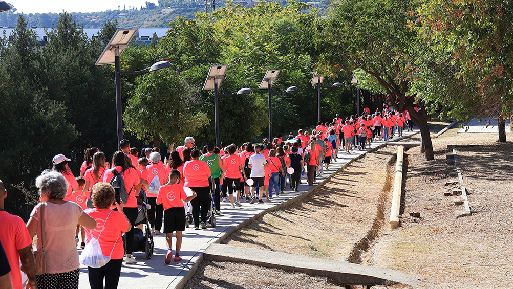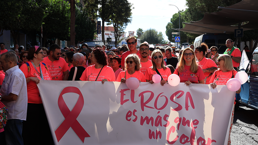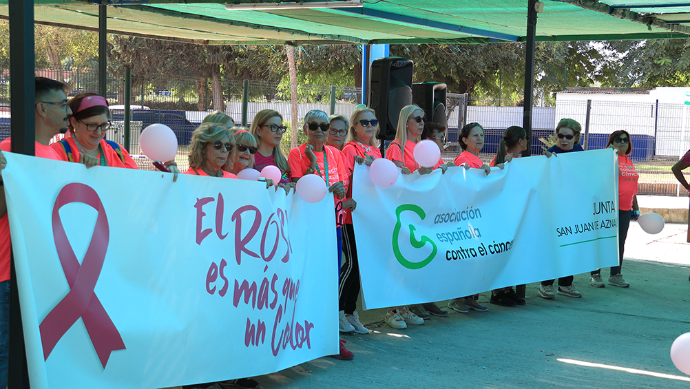 «Hoy, San Juan de Aznalfarache vuelve a teñirse de rosa. Caminamos juntos, con el corazón en el pecho y la esperanza en los pasos. Caminamos por las que están, por las que estuvieron y por las que vendrán. Por todas las personas que, cada día, plantan cara al cáncer con fuerza, valentía y una sonrisa». Con estas palabras, Rocío Fernández, daba comienzo a la lectura del manifiesto elaborado con motivo de esta cuatra edición de la marcha, que reunión alrededor de un millar de personas en torno a la lucha contra el cáncer de mama.
