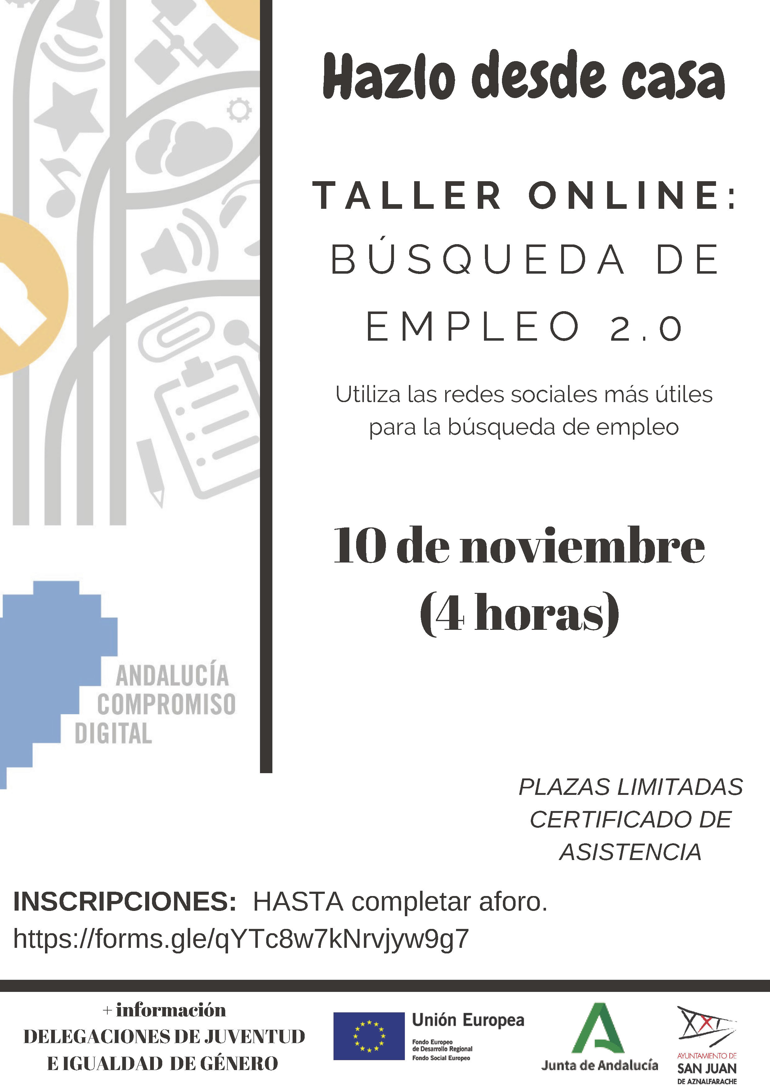 Estas sesiones formativas dotarán a los participantes de herramientas para utilizar las redes sociales en la búsqueda de empleo, para elaborar un videocurrículum y para el manejo de procesadores de texto, hojas de cálculo y presentación. Las plazas son limitadas.