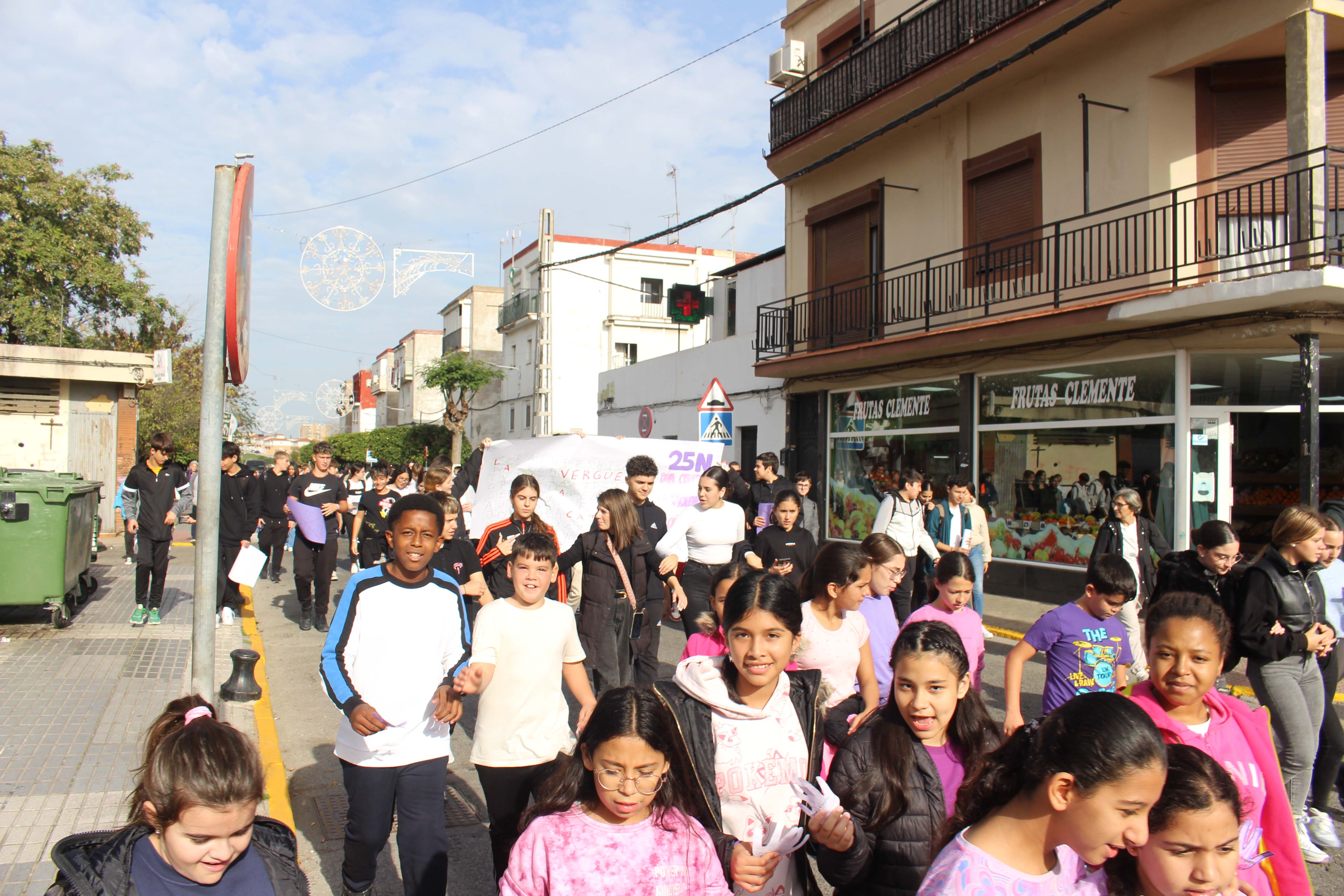 Todos los centros escolares de San Juan, asociaciones y colectivos, representantes políticos y trabajadores municipales se sumaron a la VII Marcha contra la Violencia Machista organizada por la Red Local San Juan Coeduca en coordinación con la delegación de Igualdad del Ayuntamiento de la localidad, que tuvo lugar este viernes 29 de noviembre.