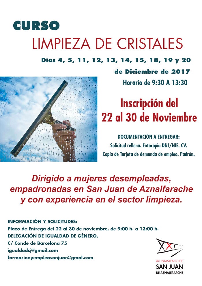 El plazo de inscripción en este curso formativo estará abierto entre el 22 y el 30 de noviembre. Está dirigido a mujeres empadronadas en San Juan de Aznalfarache.