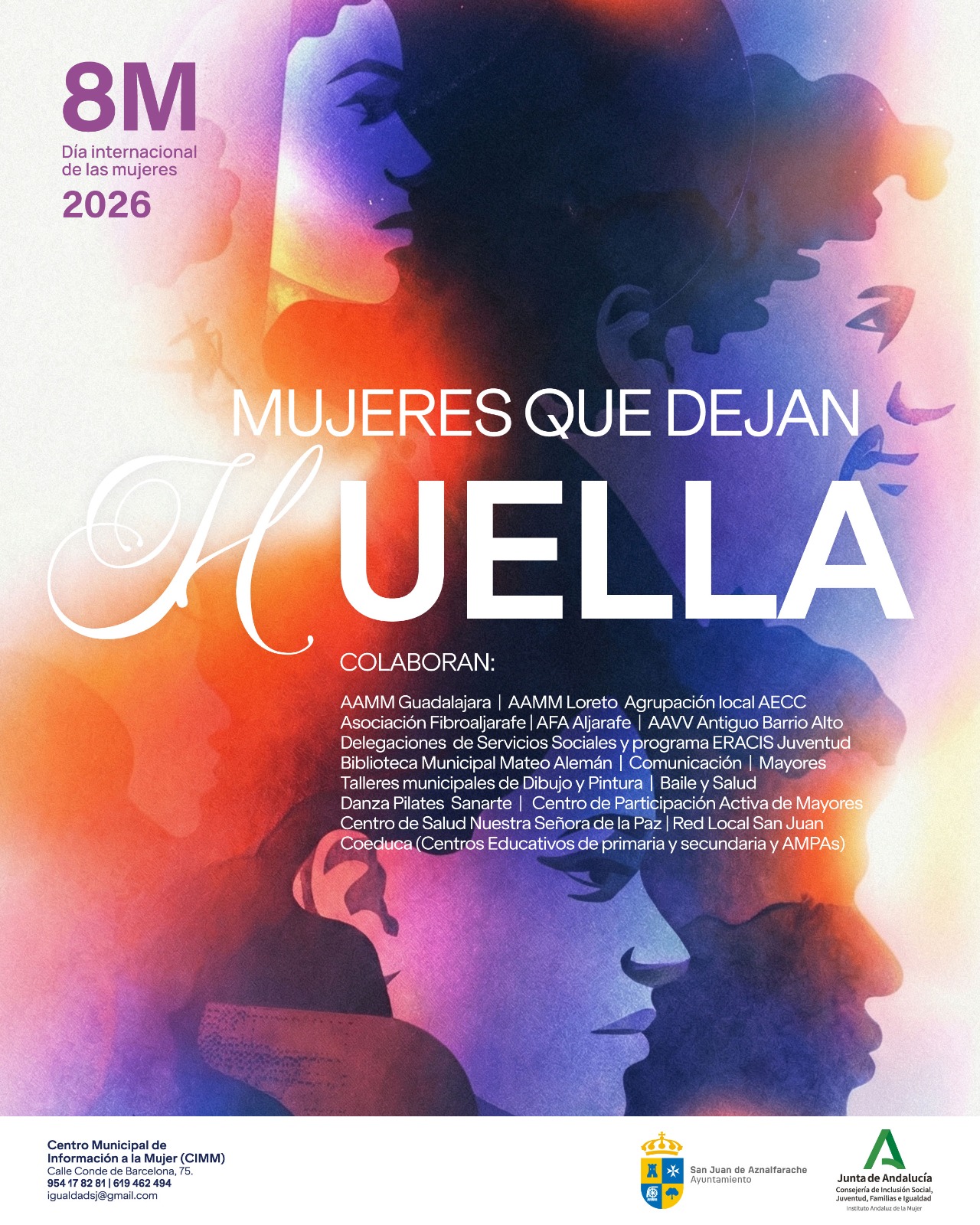 «Mujeres que dejan huella» es lema de la campaña del Día Internacional de las Mujeres, 8 de marzo, en 2026. La propuesta de la delegación de Igualdad del Ayuntamiento de San Juan de Aznalfarache pretende poner bajo el foco el trabajo que realizan las mujeres y la relevancia de sus logros.