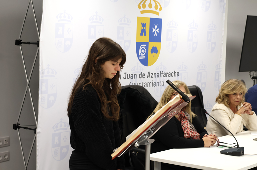 El Ayuntamiento de San Juan de Aznalfarache ha celebrado este viernes 5 de diciembre un Pleno Intergeneracional para conmemorar el Día de la Constitución en el que jóvenes y mayores de la localidad han puesto en común sus visiones sobre la vigencia de la Carta Magna. La sesión ha estado presidida por la alcaldesa, Mª Luisa Moya, que ha estado acompañada por el concejal de Comunicación y Atención a la Ciudadanía, D. Francisco José Carrasco, que ejerció como secretario de este Pleno conmemorativo, y por la delegada de Educación en funciones, Rocío Amado.