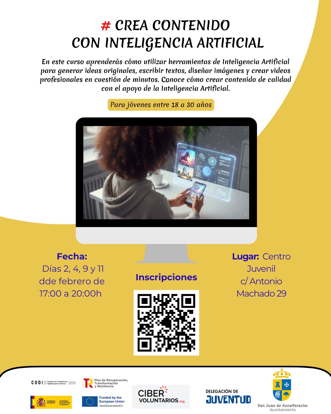 Además de la programación prevista durante todo el curso 25-26, el Centro Juvenil de San Juan de Aznalfarache, ha preparado varios talleres y actividades especiales que se van a desarrollar durante el primer trimestre de 2026. Volvemos a apostar por actividades demandadas por la juventud sanjuanera que combinan el ocio con la formación y las herramientas para la búsqueda de empleo.