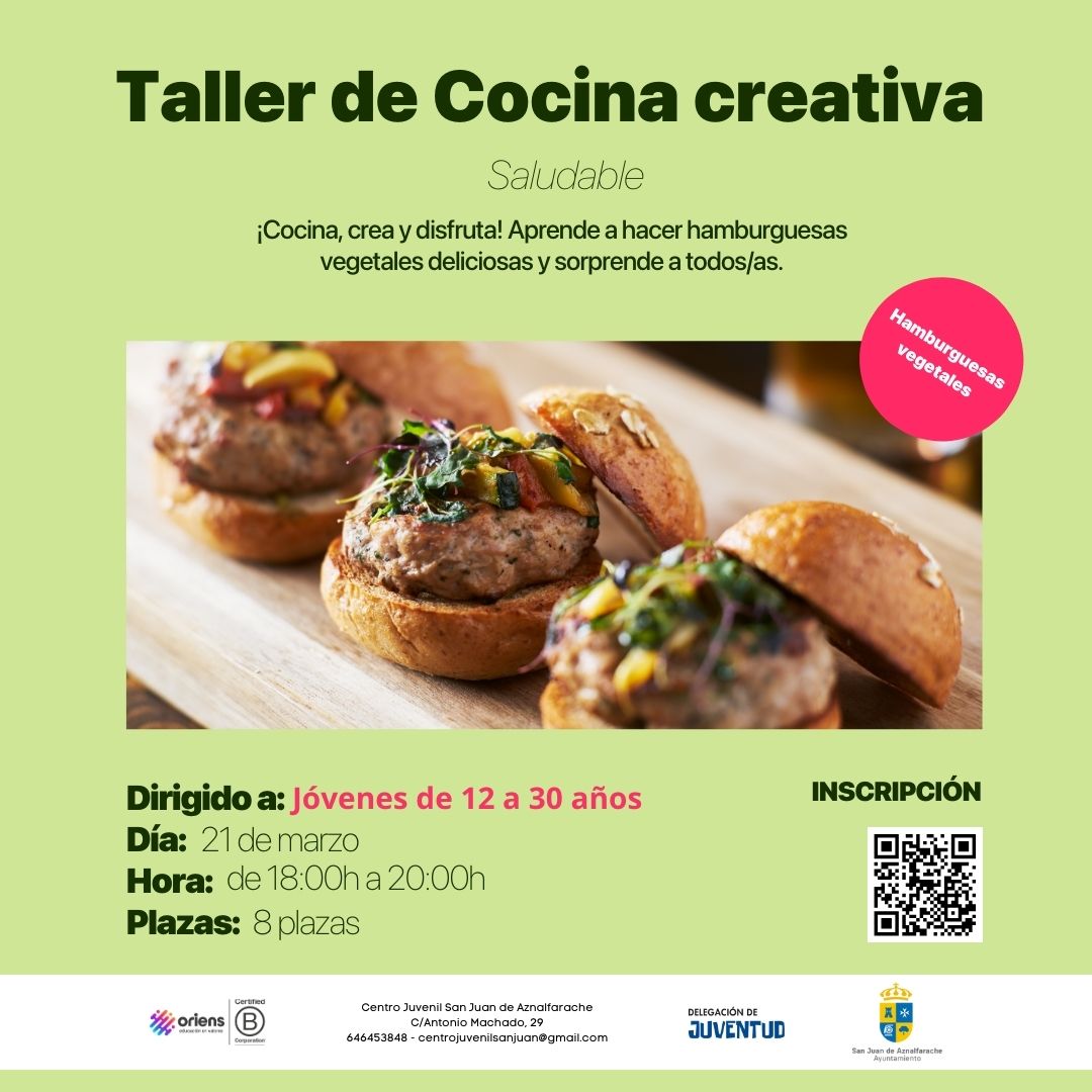 Aprenderás a crear deliciosas y nutritivas hamburguesas hechas a base de ingredientes vegetales. Descubre cómo combinar sabores, texturas y especias para preparar recetas originales que no solo son saludables, sino también irresistibles. Este taller es perfecto para quienes quieren explorar alternativas creativas en la cocina y disfrutar de platos sostenibles y sabrosos.