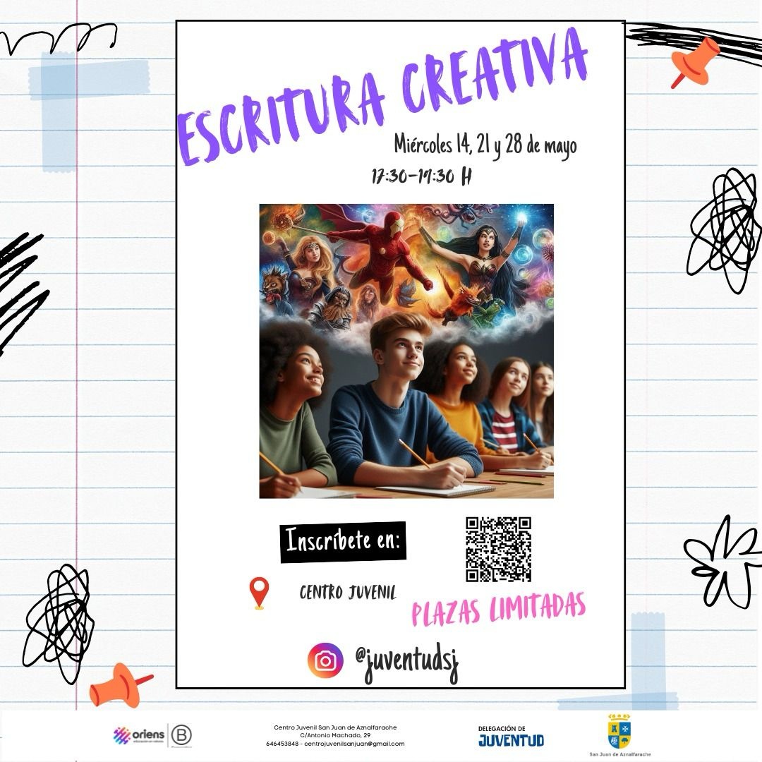 Te invitamos a dar rienda suelta a tu imaginación y descubrir el poder de las palabras. Aprenderás técnicas sencillas para crear personajes únicos, tramas envolventes y mundos llenos de vida, mientras exploras diferentes estilos narrativos. No necesitas experiencia previa, solo ganas de escribir y compartir tus ideas en un ambiente inspirador y dinámico.