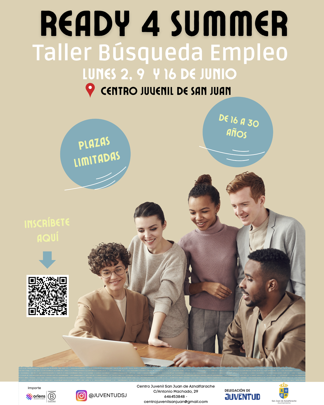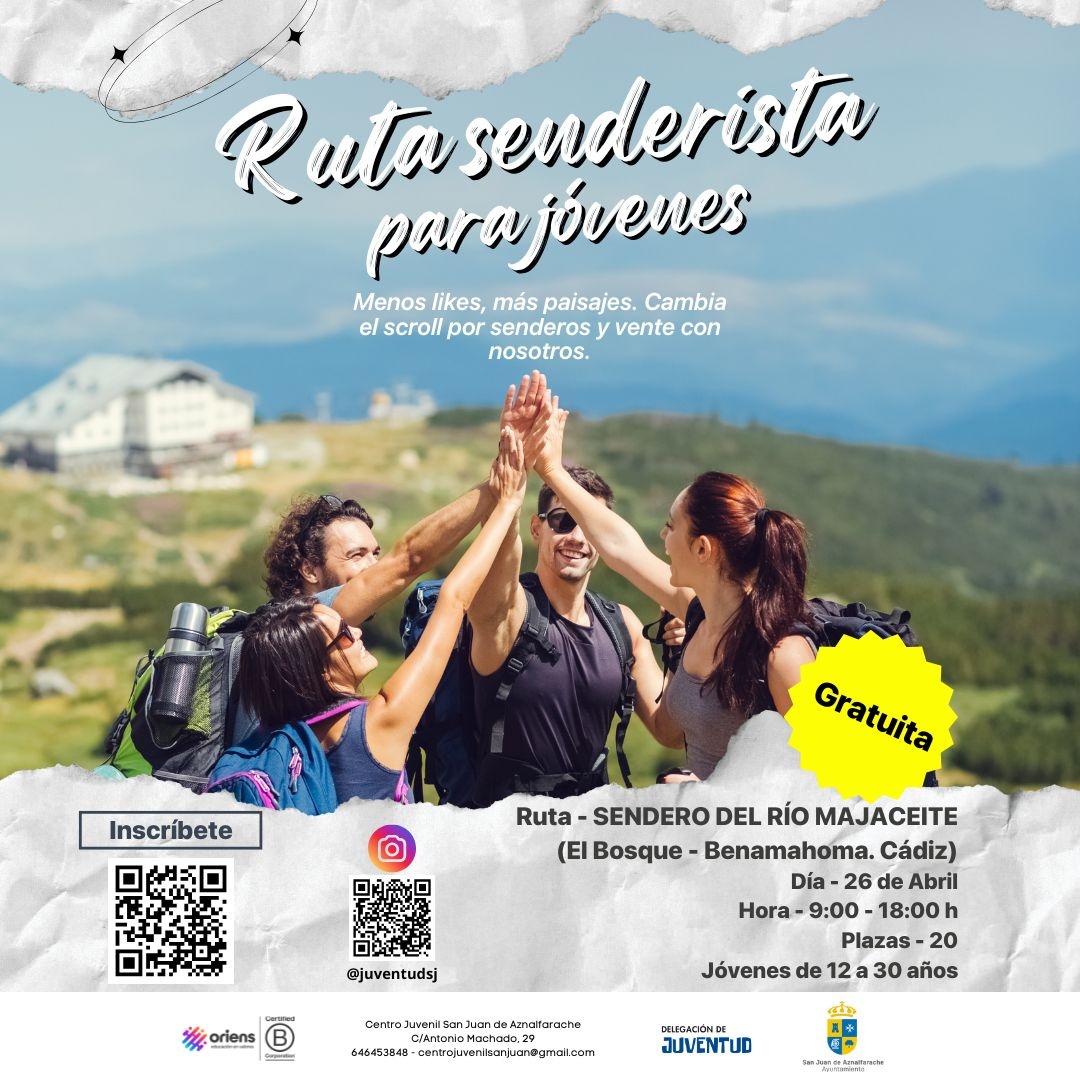 El número de plazas es limitado, 20. Inscríbete antes de que se agoten. Dirigido a jóvenes de 12 a 30 años.