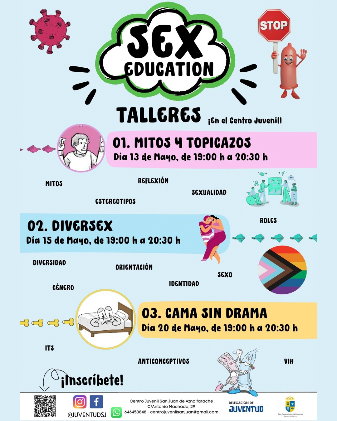 20 de mayo, martes: Cama sin drama. Cerramos el taller con una sesión en la que hablamos de sexo y salud, ITS, anticonceptivos, VIH, etc.