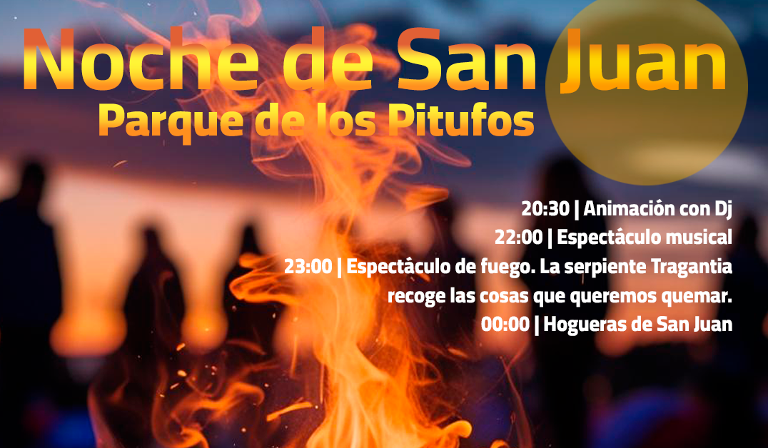 Este año celebramos la Noche de San Juan en el Parque de los Pitufos y tendremos musica y espectáculo de fuego.