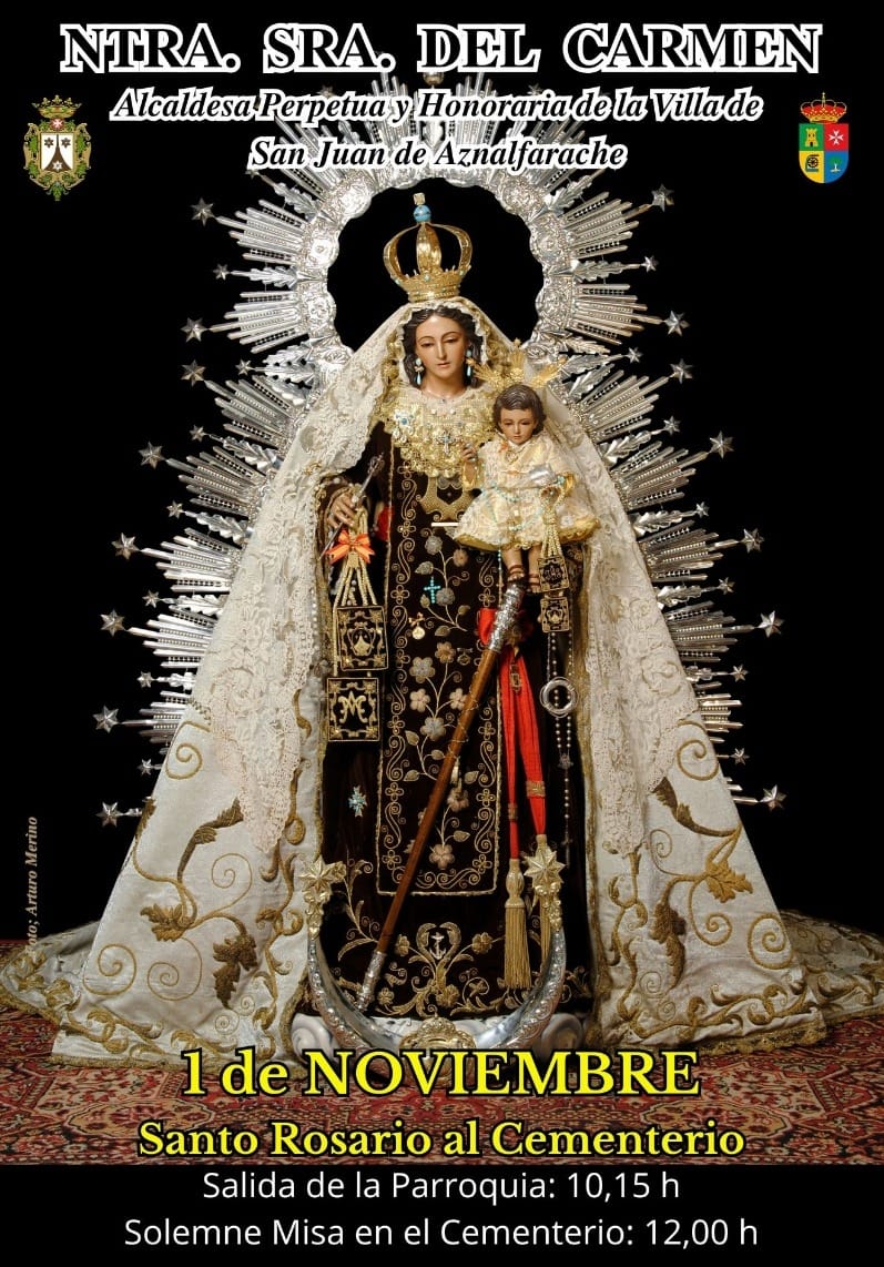 La Virgen del Carmen recorrerá las calles de San Juan este sábado 1 de noviembre en Santo Rosario y presidirá un Solemne Funeral por todos los difuntos en el cementerio como todos los años.