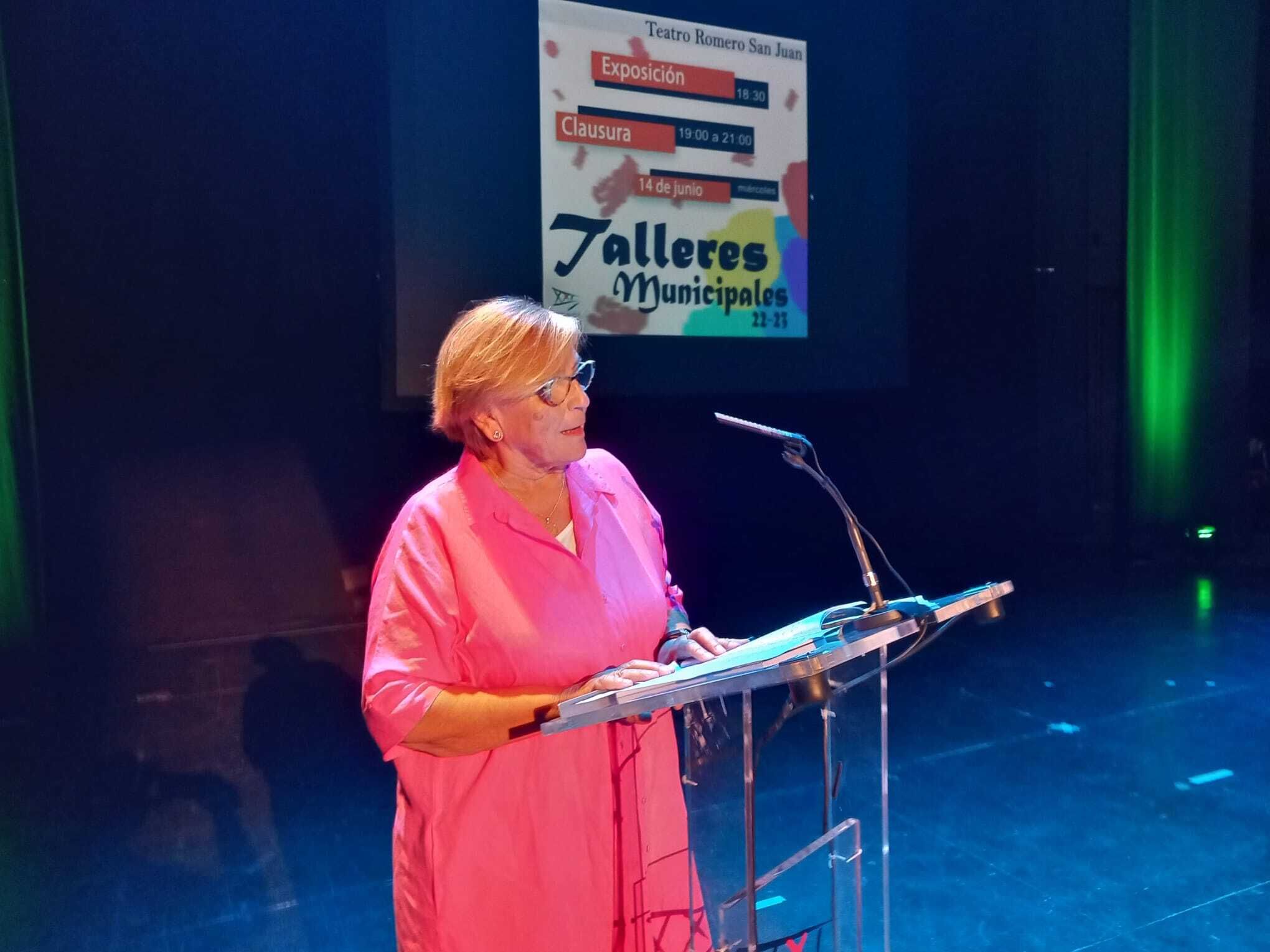 El Teatro Romero San Juan acogió el cierre de la temporada de los talleres de la temporada 22-23. Sobre el escenario el grupo de baile bajo la dirección de Carmelo Molina en los talleres de baile y salud y cultura y las poesías de Tere, Lola, Paqui, Justa y Rosa, vídeos resumen de instantáneas de todo el año de los talleres de restauración, pintura, Biblioteca, Igualdad, Bienestar Social, Salud y Mayores.