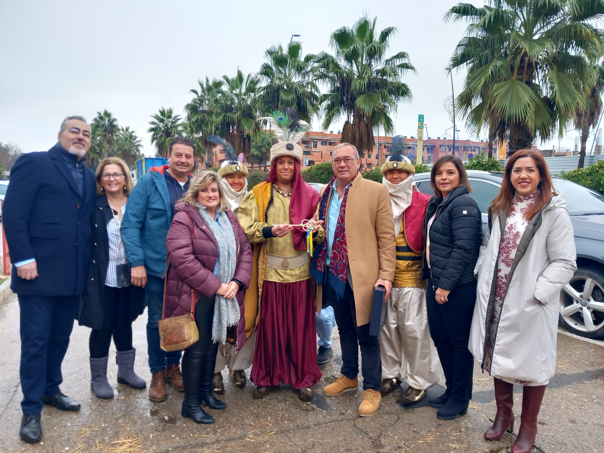 Las inclemencias meteorológicas motivaron que la visita se trasladará al Polideportivo 1 de Mayo. Allí el alcalde de San Juan, Fernando Zamora acompañado de representantes de la corporación, los tres Reyes Magos y la Asociación Amigos de la Cabalgata "Agustín Pérez Sastre" le hacía entrega de las llaves del municipio.