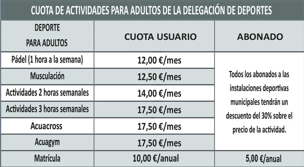 Las actividades deportivas para adultos comienzan el 1 de octubre de 2024 y finalizan el 30 de mayo de 2025.