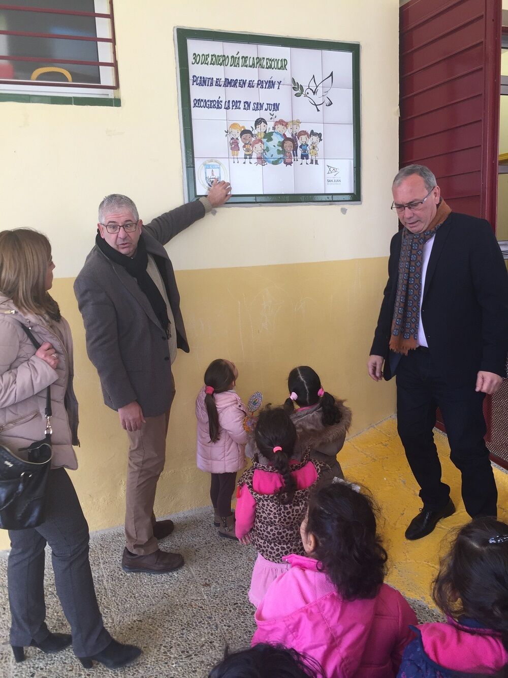 El alcalde, Fernando Zamora, asistió esta mañana a la celebración del Día de la Paz en el colegio Payán Garrido, donde acompañó a un grupo de escolares de Infantil en la plantación de su árbol de la paz y, posteriormente, descubrió junto al director, Antonio Caro, la concejala de Medio Ambiente, Inmaculada Serrano, y varios representates del AMPA, el azulejo conmemorativo por el Día Escolar de la Paz que se ha colocado en los edificios de este centro educativo de San Juan.