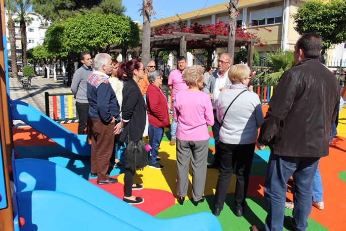 La zona de juegos infantiles de la Plaza del Doncel, en la barriada de Guadalajara, ya está lista para el uso tras la inversión de algo más de 35.000 euros realizada con fondos del Plan Supera V que ha supuesto la renovación del suelo de caucho, de los juegos infantiles y del vallado del parque. El alcalde de San Juan de Aznalfarache, visitó el parque infantil y mantuvo un encuentro con varios vecinos de la barriada y representantes de los colectivos de la zona.