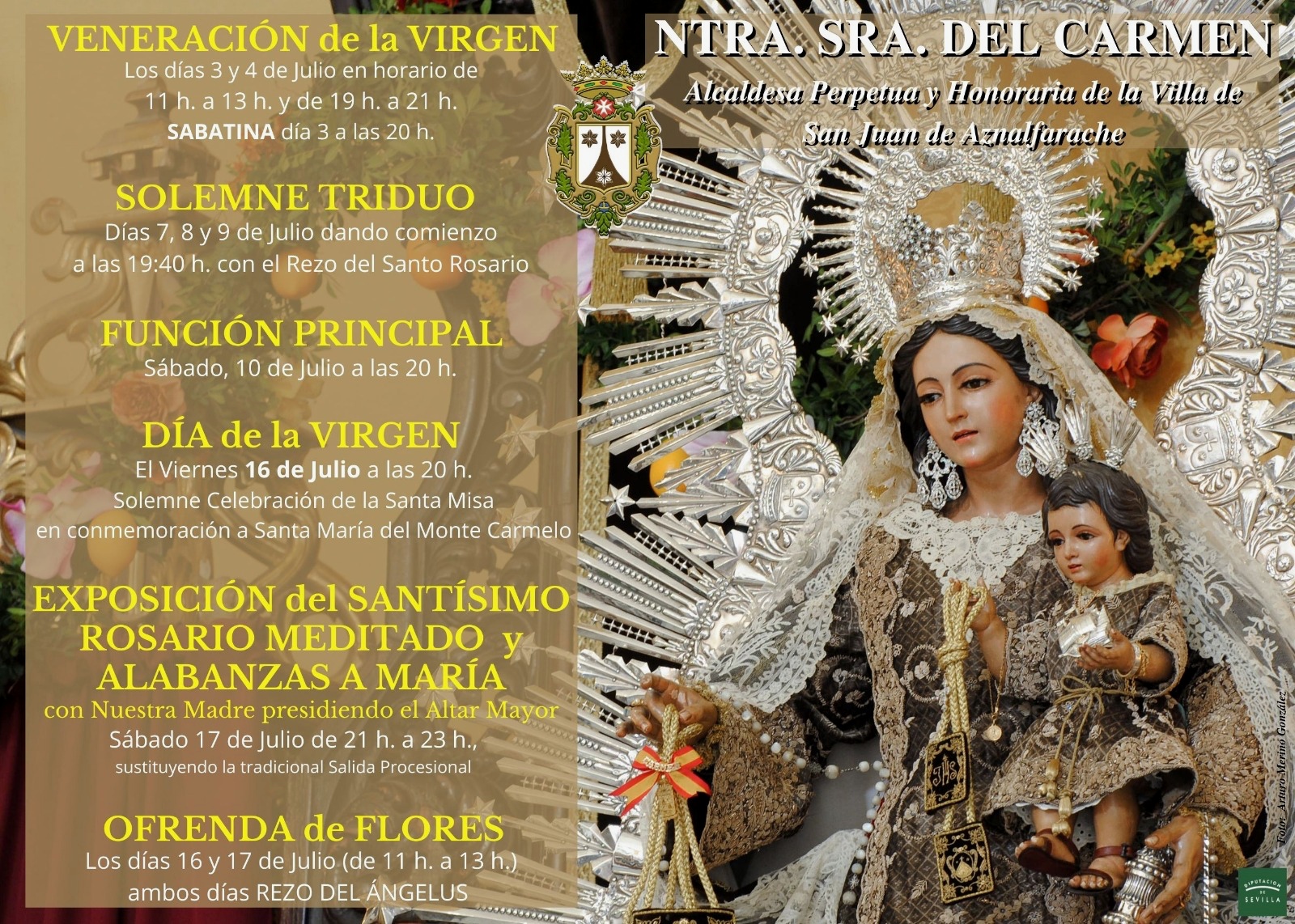 La hermandad de la Virgen del Carmen celebrará este fin de semana los últimos cultos organizados para celebrar la onomástica de su titular.