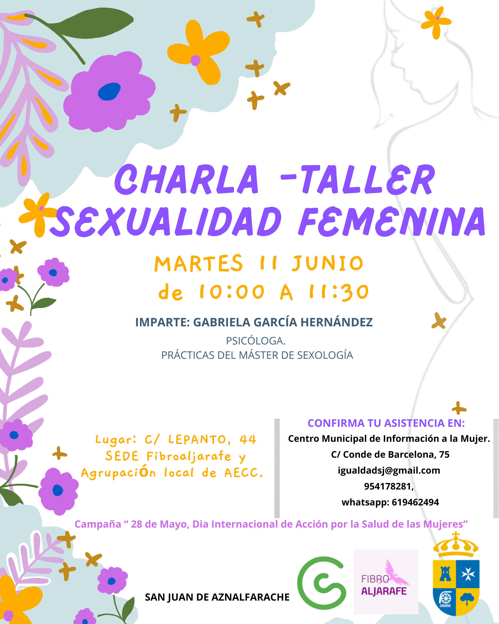 La delegación de Igualdad e Inclusión Social del Ayuntamiento de San Juan de Aznalfarache organiza una Charla - Taller sobre sexualidad Femenina que pondrá fin a las actividades de la programación elaborada con motivo del Día Internacional de Acción por la Salud de las Mujeres, el 28 de mayo.