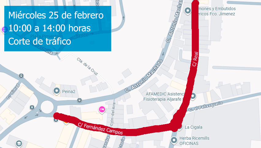 Corte de tráfico en la Calles Fernández Campos y Real.