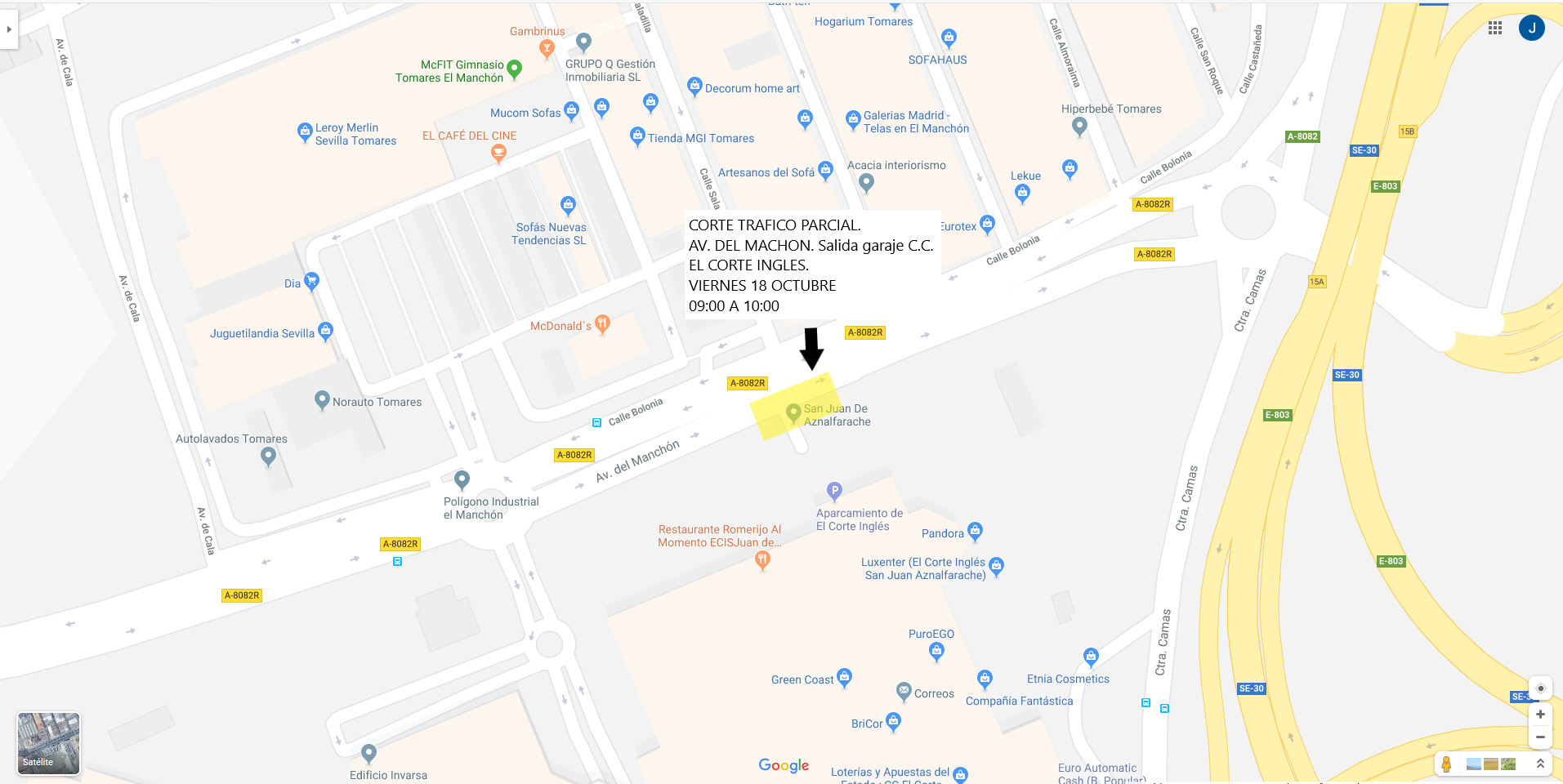 Emasesa realizará trabajos de inspección en sus redes de abastecimiento en la avenida del Manchón, en la salida del garaje del Centro Comercial El Corte Inglés. Sólo afectará a la salida del parking.