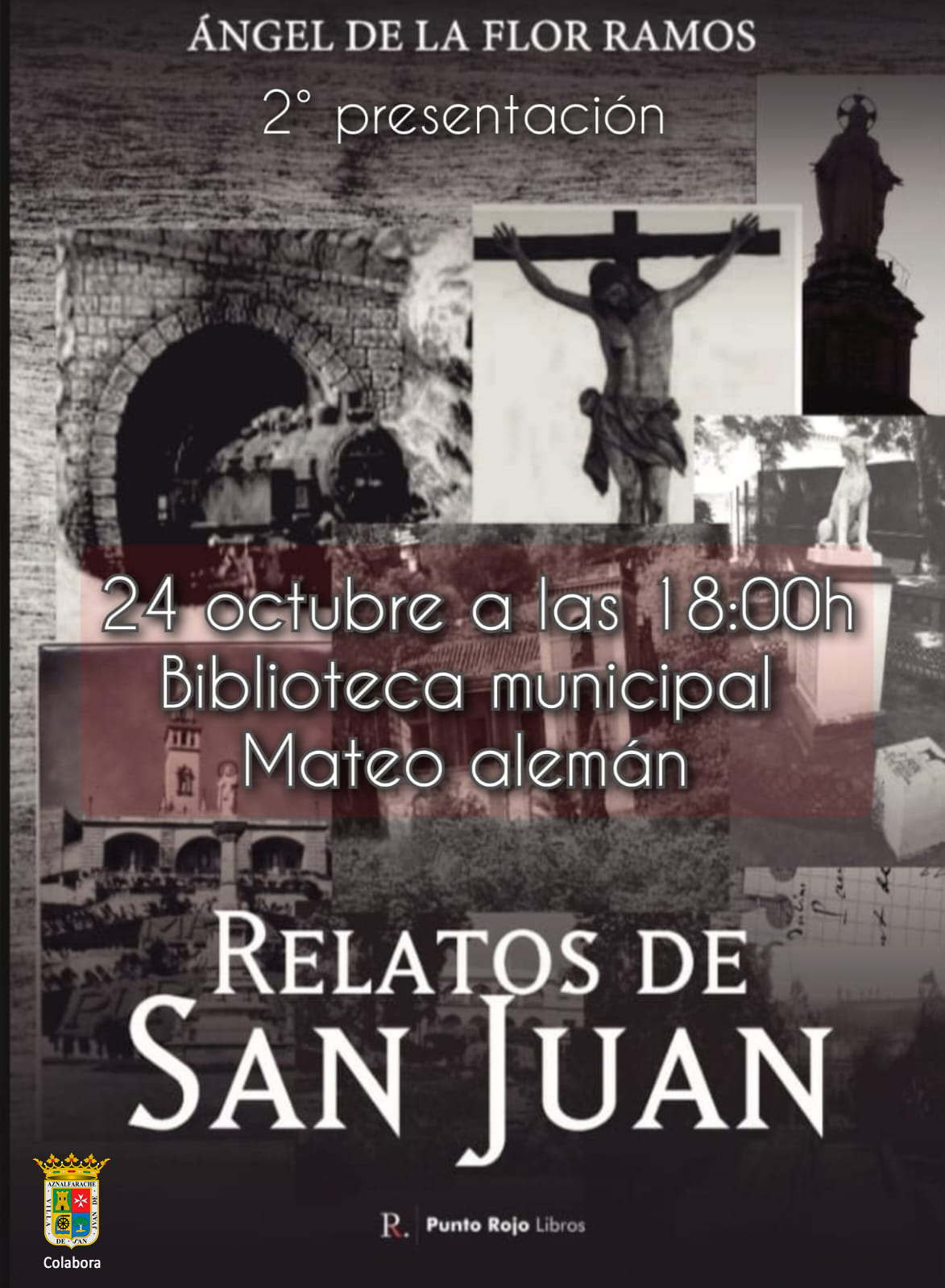 Además, el martes 24 de octubre, la delegación de Cultura y la Biblioteca colaboran con el escritor sanjuanero, Ángel de la Flor, en la organización de la presentación de su libro "Relatos de San Juan". Tendrá lugar a las 18:00 horas en la Biblioteca. Rafael Jiménez Foncubierta será el encargado de introducir al autor, que posteriormente hablará sobre sus relatos y compartirá un rato de charla con las personas que asistan a la presentación.