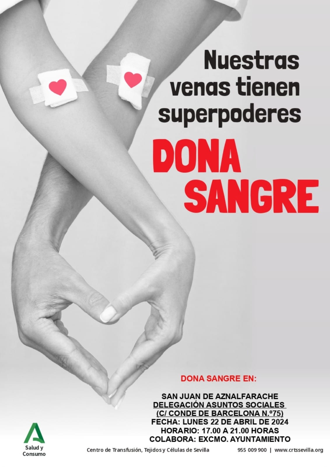 El lunes 22 de abril habrá una campaña de donación de sangre en San Juan de Aznalfarache. Será en el centro de Servicios Sociales.