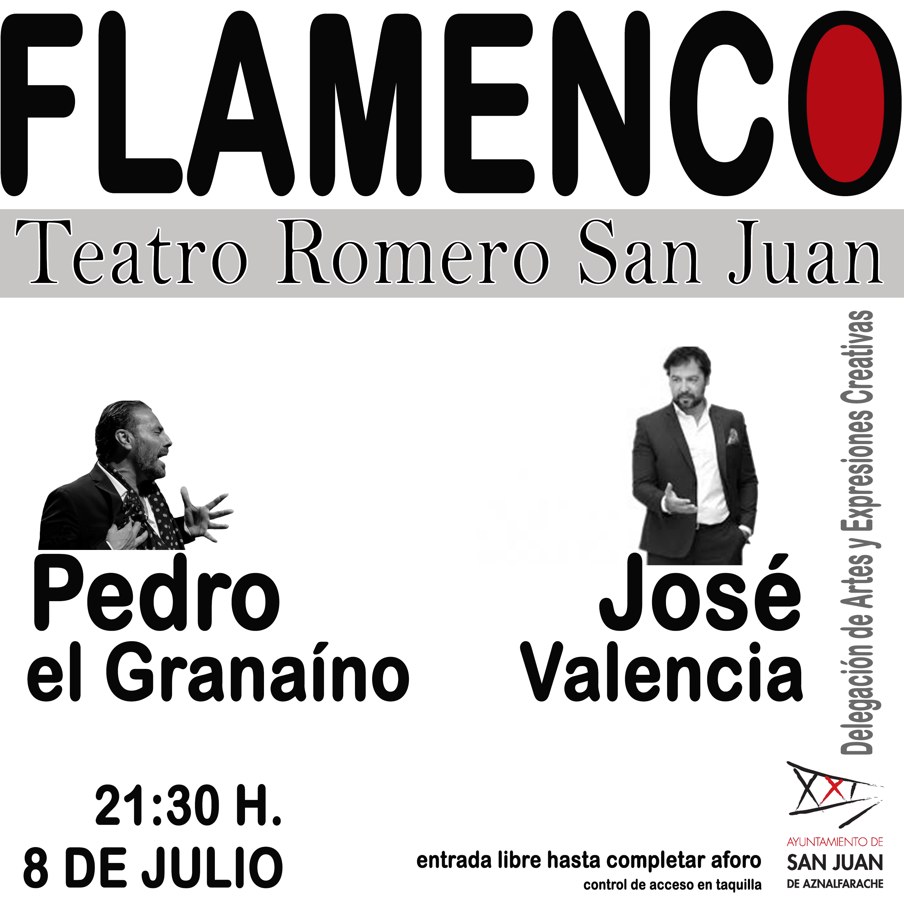 Los cantaores José Valencia y Pedro el Granaíno se subirán a las tablas del Teatro Romero San Juan el próximo viernes 8 de julio. Ofrecerán un espectáculo de cante bajo el nombre "Flamenco".