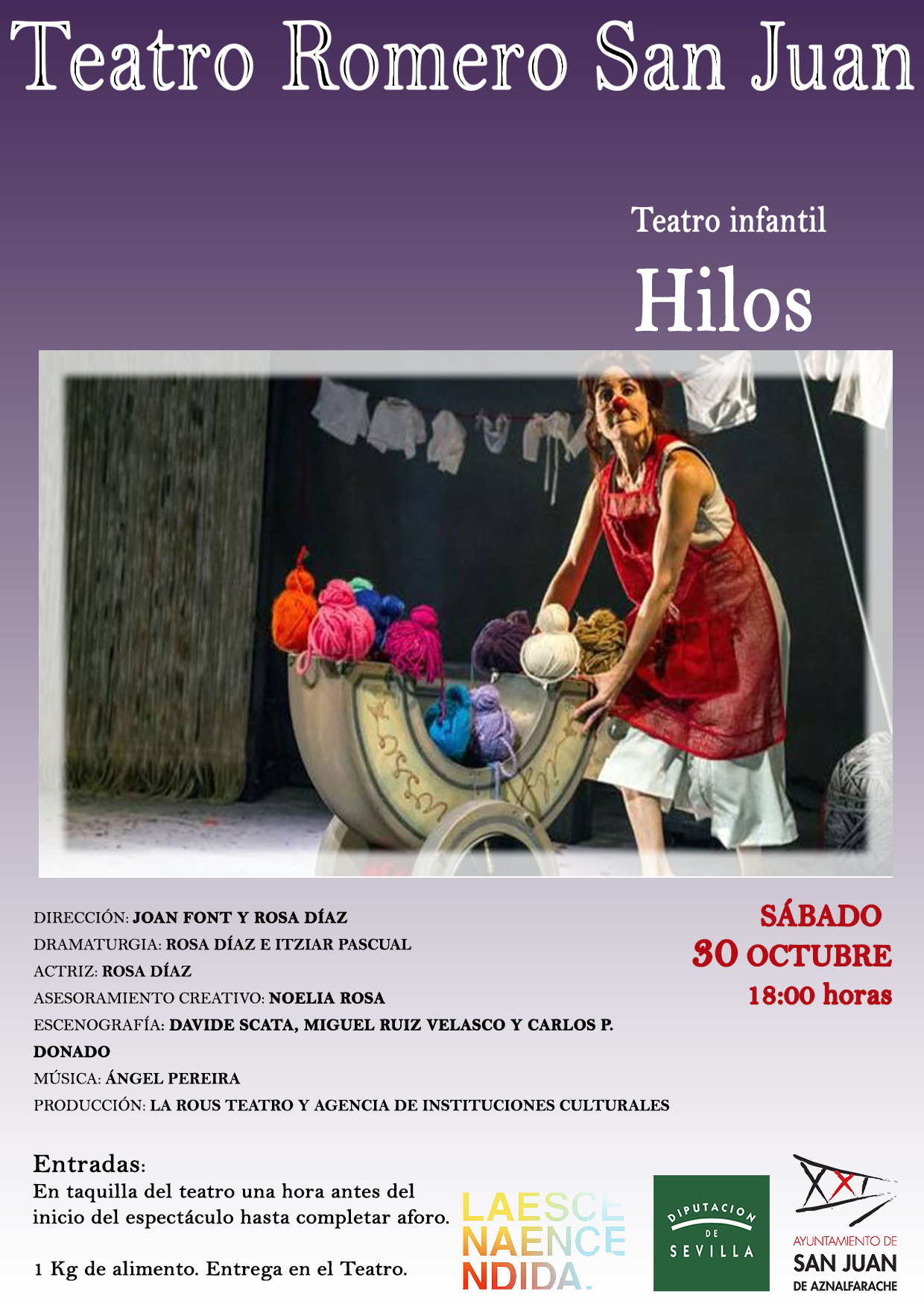 El teatro municipal Romero San Juan acogerá el sábado 30 de octubre una obra de teatro infantil titulada «Hilos» de la compañía «La Rous».