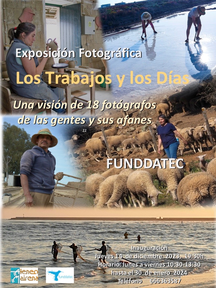 Funddatec inaugura hoy jueves, 14 de diciembre, a las 19:30 horas, en su sede de San Juan de Aznalfarache dos exposiciones colectivas de fotografías: "Los Trabajos y los Días" y "Retrospectiva-23" del grupo "Objetivo Perfecto" que permanecerán abiertas hasta el 30 de enero de 2024.