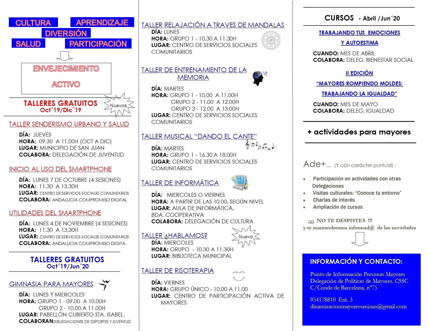Lugar: Punto de Información a las Personas Mayores. Calle Conde de Barcelona, 75