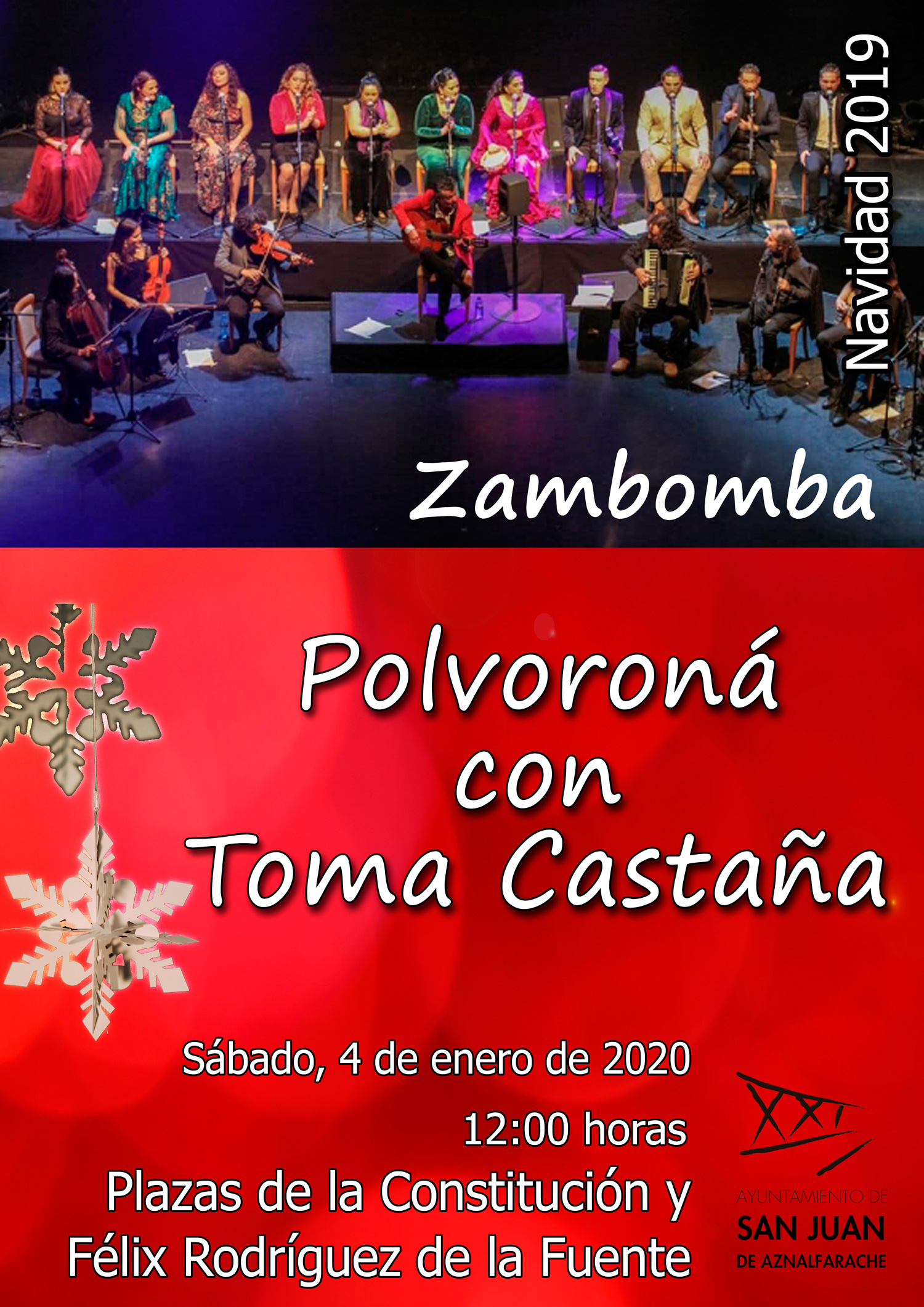Artistas flamencos se unen a músicos de jazz y clásica para ofrecer este espectáculo flamenco que se desarrollará el sábado 4 de enero en las plazas de la Constitución y Félix Rodríguez de la Fuente. El grupo gaditano «Toma Castaña» ofrecerá en San Juan su amplio repertorio de villancicos flamencos.