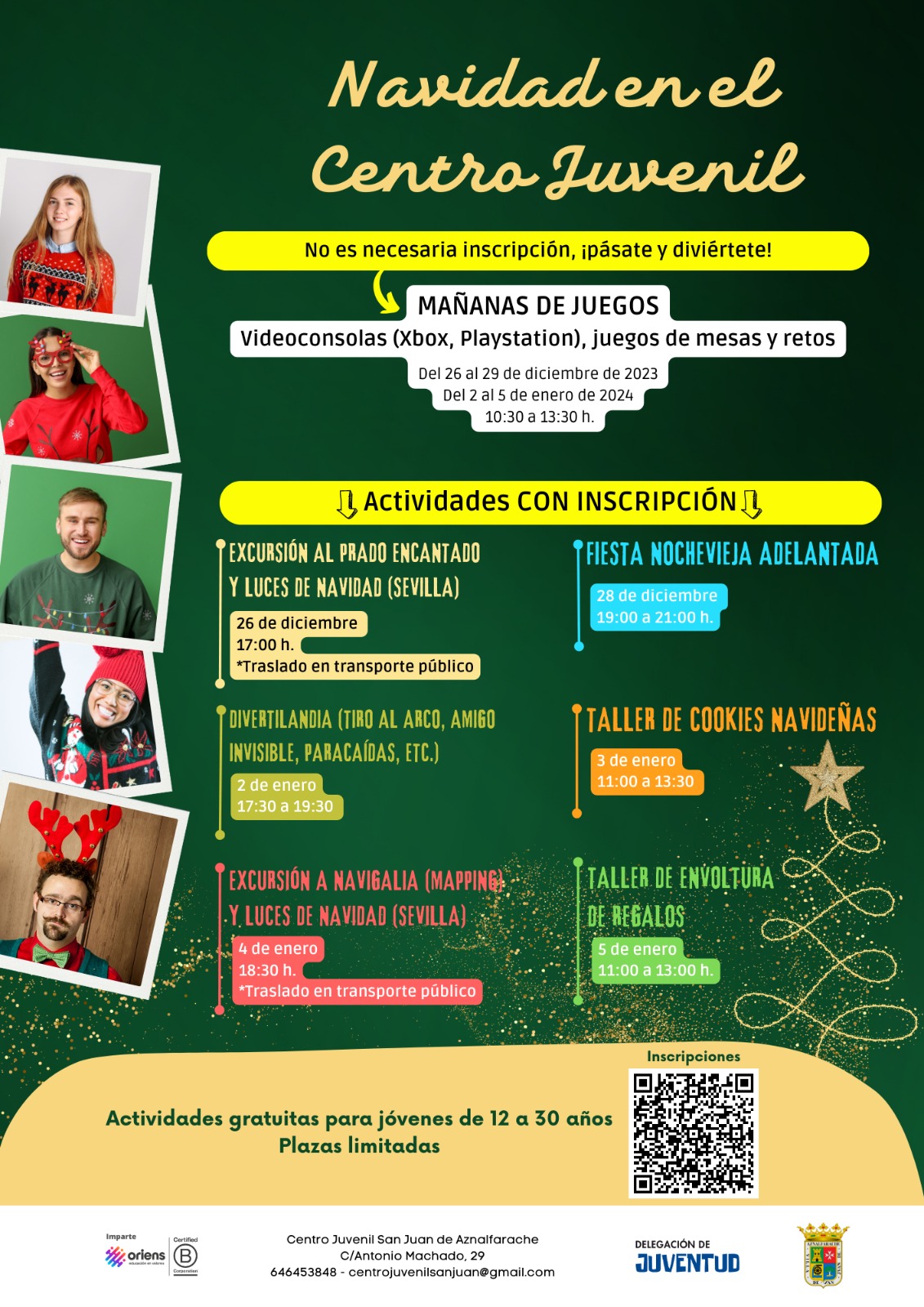 El Centro Juvenil ha preparado una amplia programación de actividades para esta Navidad, dirigida a jóvenes de 12 a 30 años. Todas las actividades son gratuitas. Algunas requieren inscripción previa: