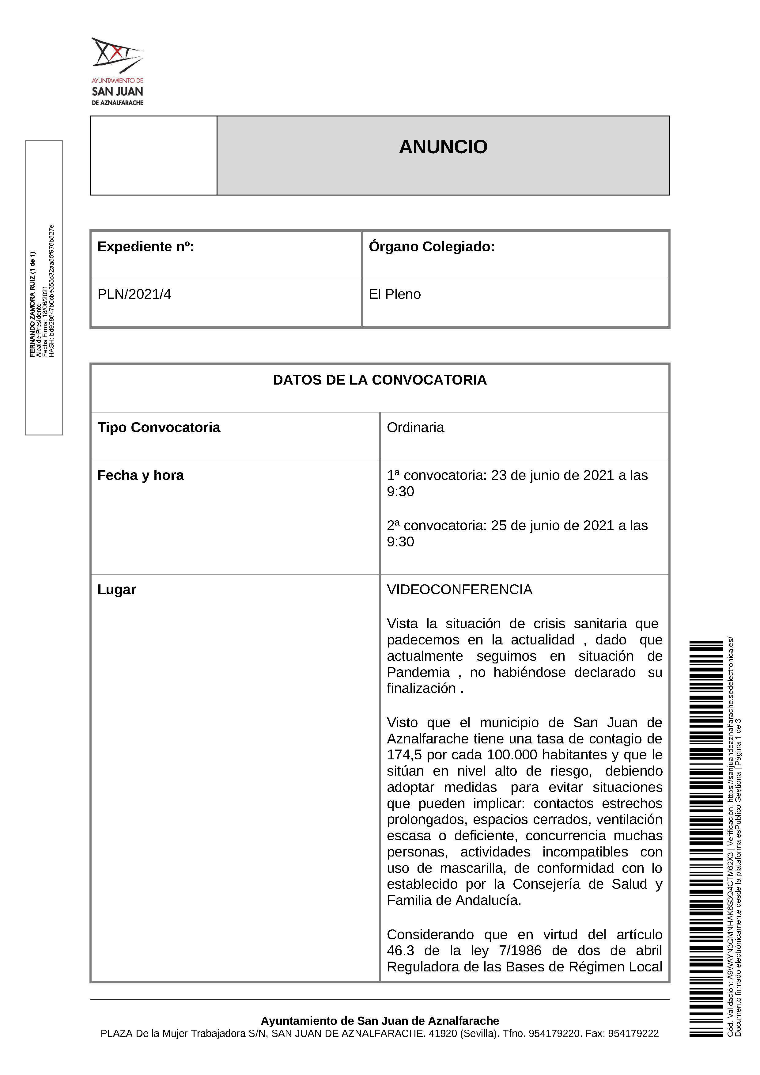 23 de junio de 2021. Telemático