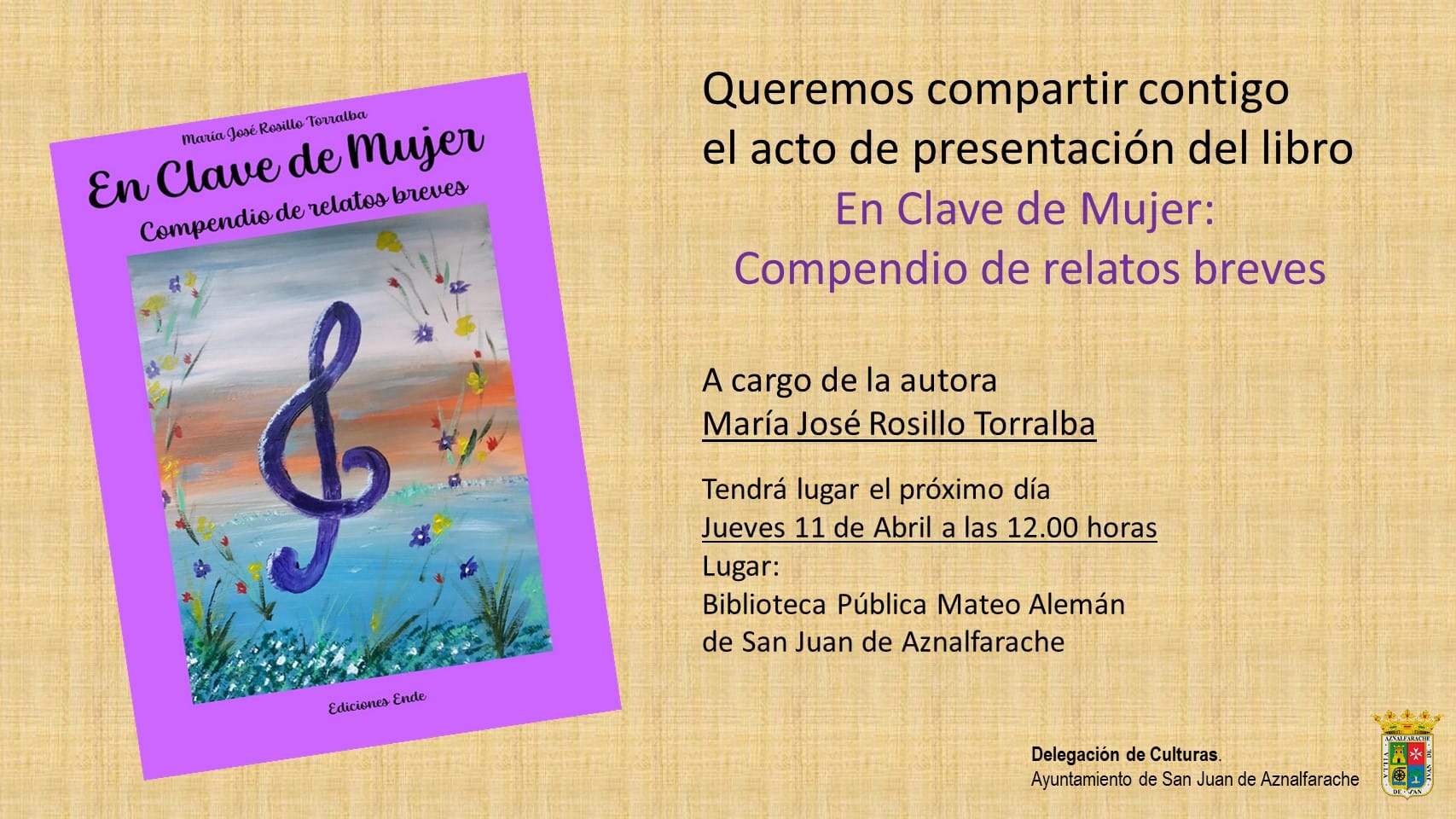 La Biblioteca Municipal Mateo Alemán acoge el jueves 11 de abril la presentación de un nuevo libro de la escritora sanjuanera, María José Rosillo. Será a partir de las 12:00 horas.