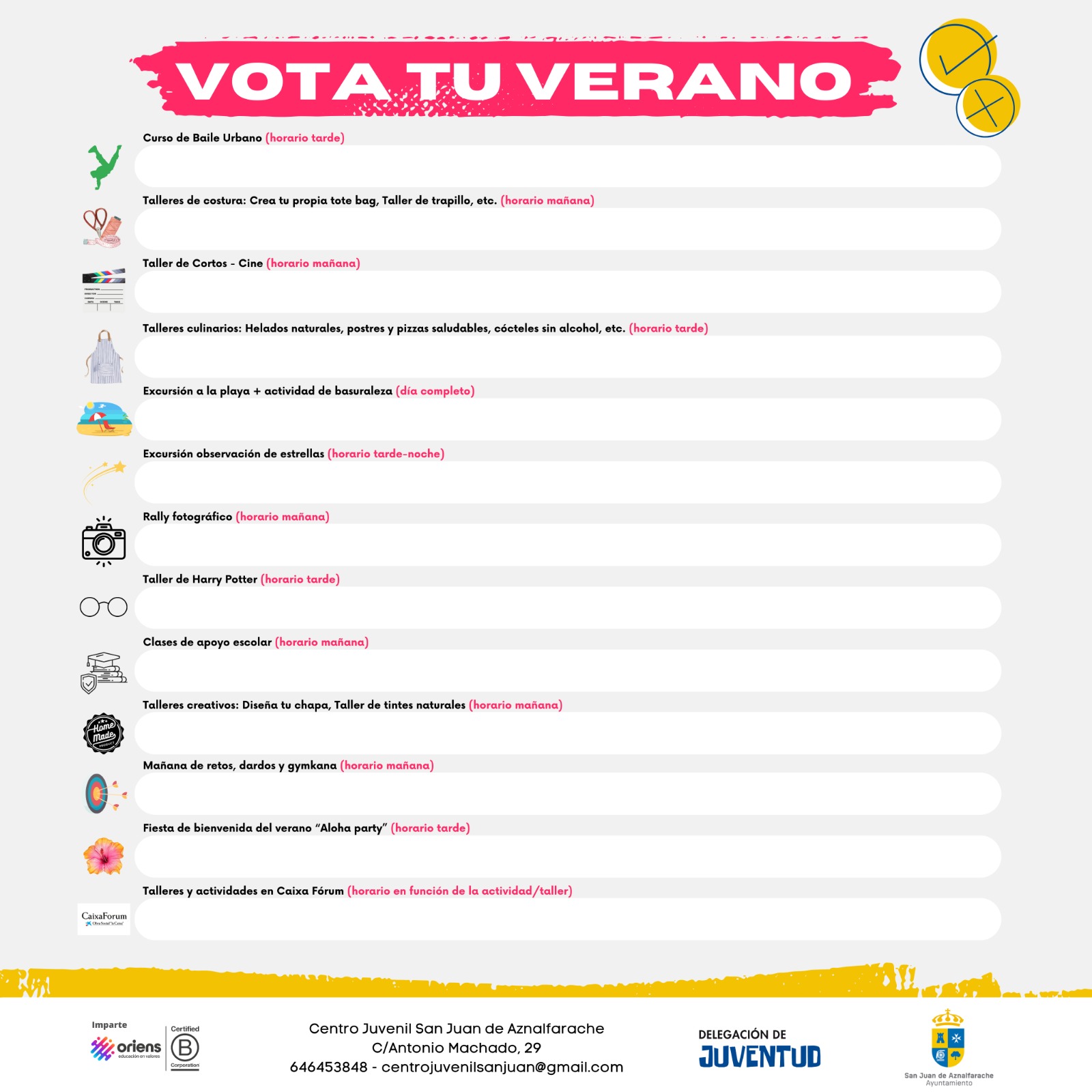 ¿Qué actividad te gustaría encontrar este verano en la oferta del Centro Juvenil? Ahora tienes la oportunidad de elegir. Entra en la encuesta y marca tus preferencias.