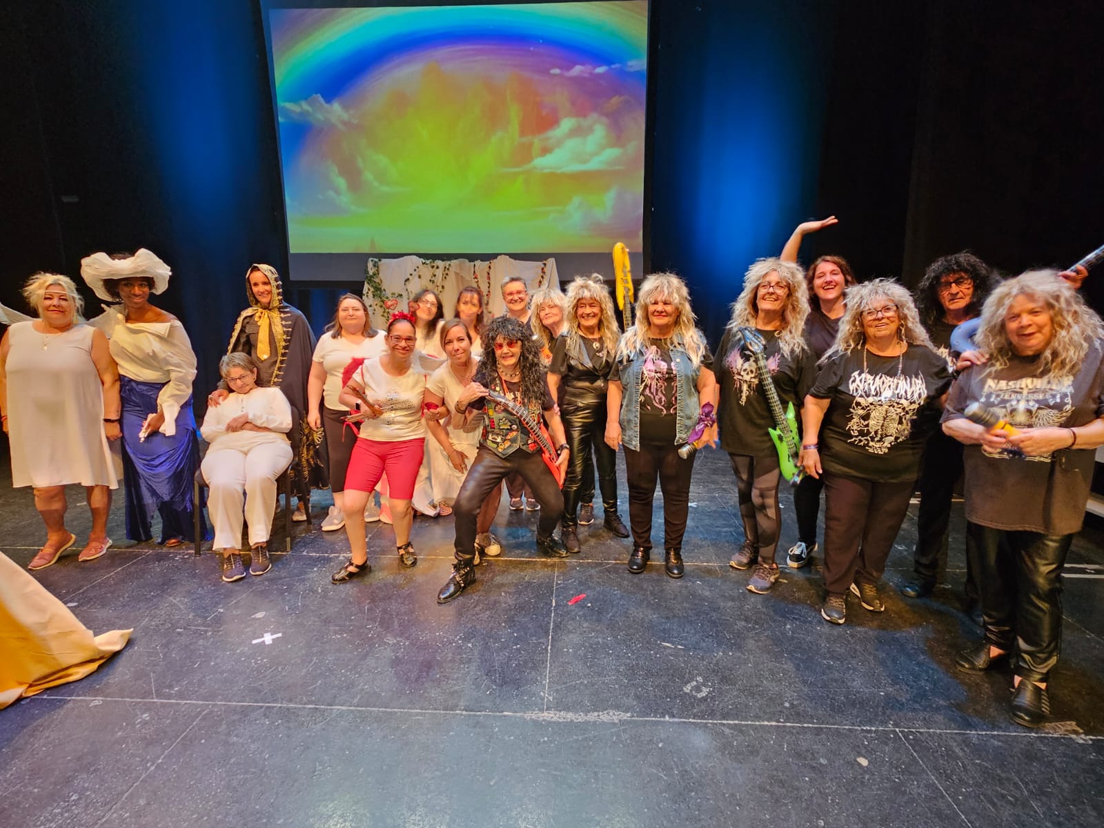 El cierre de fiesta del taller Sanarte con la participación del taller Dando la Cara y la interpretación de "El cielo no puede esperar" de María José Rosillo. Humor celestial que hizo las delicias de un público que ovacionó a las artistas.